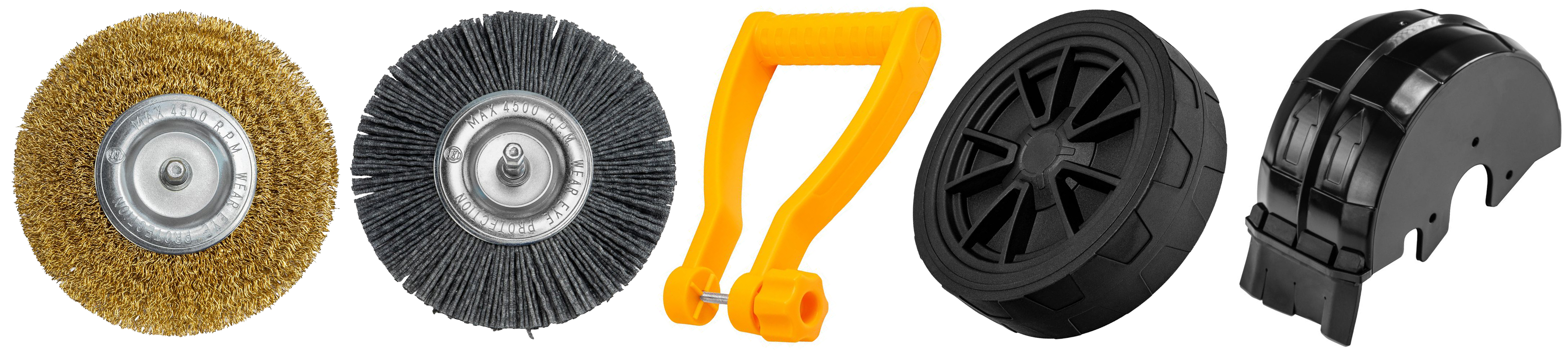 - Dwie wymienne szczotki – metalowa do uporczywych zabrudzeń na twardych podłożach oraz nylonowa do delikatniejszych powierzchni.