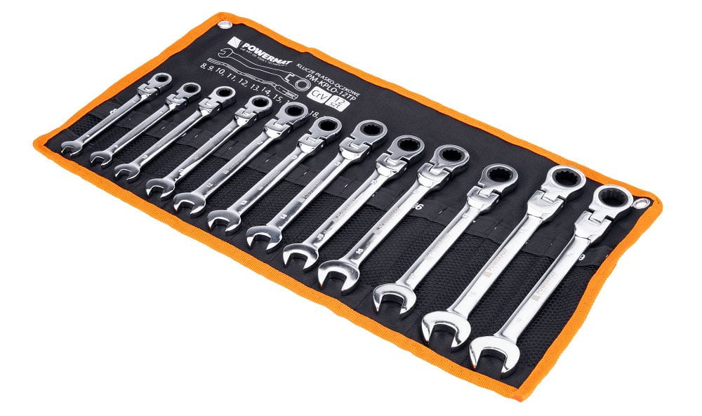 Zestaw kluczy płasko-oczkowych z mechanizmem grzechotkowym stanowi praktyczne wyposażenie warsztatu, garażu oraz stanowiska serwisowego. Szeroki zakres rozmiarów oraz zastosowanie trwałych materiałów sprawiają, że narzędzia te umożliwiają sprawną i precyzyjną obsługę połączeń śrubowych w różnych zastosowaniach. Dzięki przemyślanej konstrukcji zestaw pozwala na efektywną pracę nawet w ograniczonej przestrzeni.
