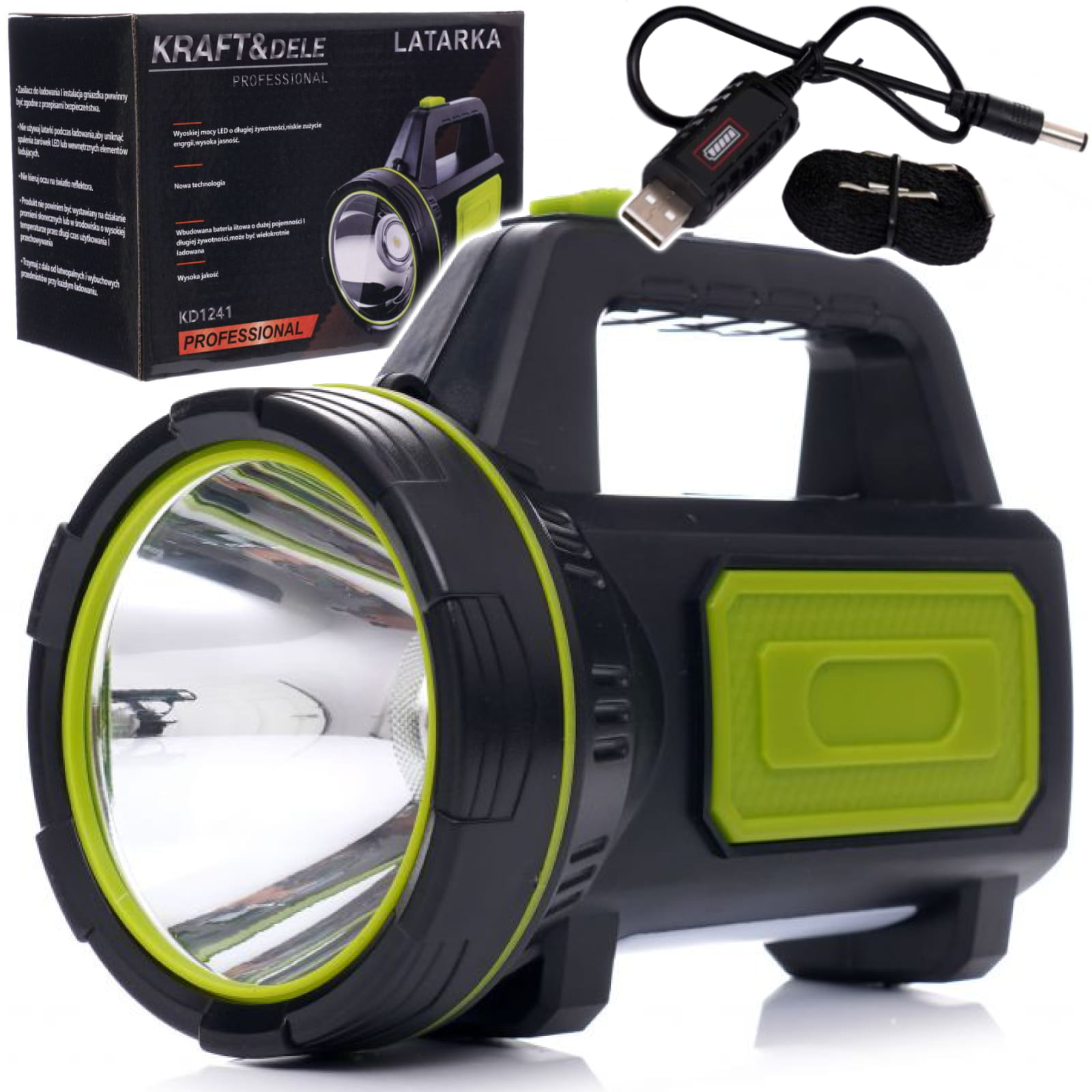 Latarka szperacz z funkcja powerbanka została zaprojektowana z myślą o wielofunkcyjnym zastosowaniu. Może być używana w wielu warunkach, posiada kilka trybów świecenia, ładowana za pomocą kabla USB.