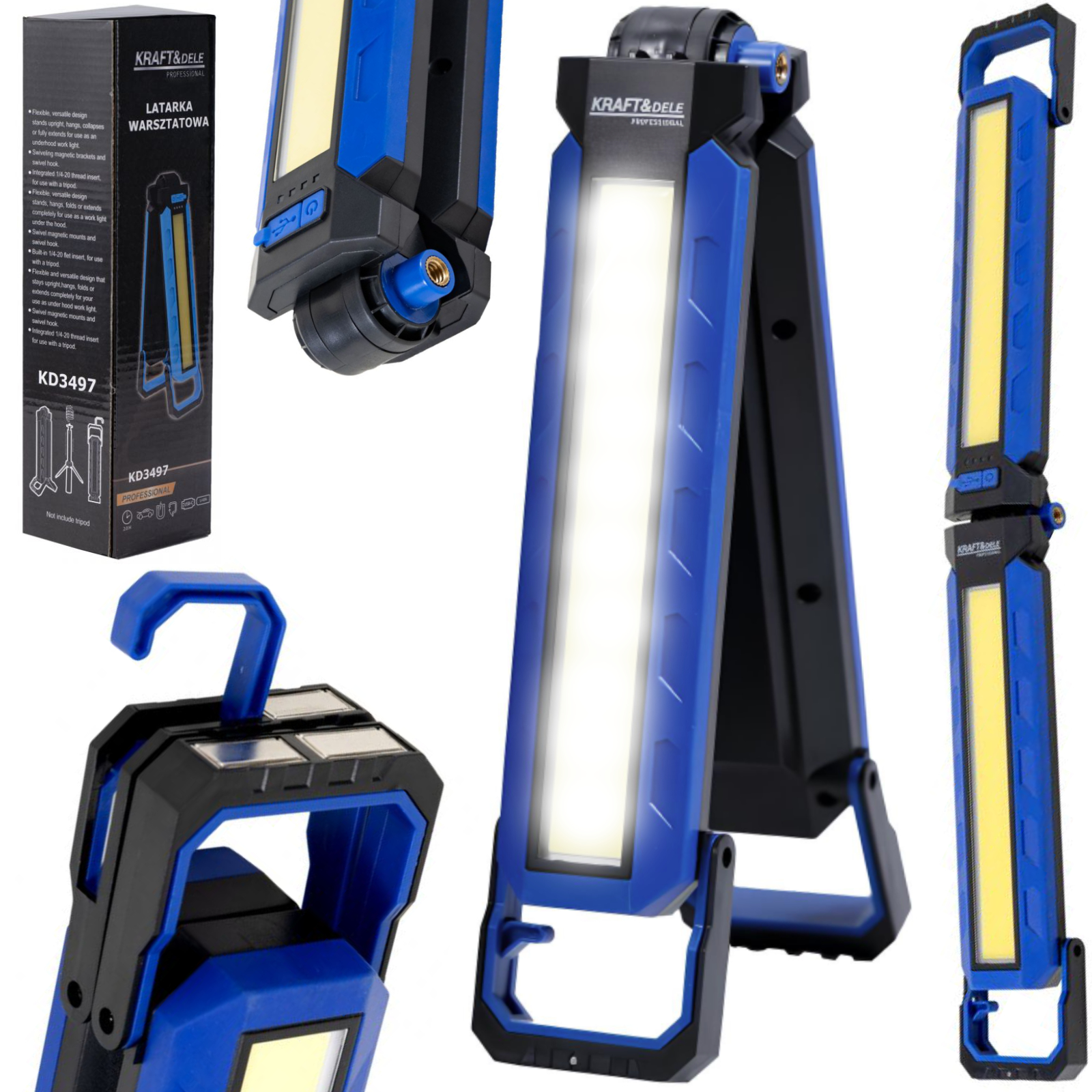 Praktyczne źródło światła przeznaczone do pracy w warsztacie, garażu, przy naprawach pojazdów oraz w wielu innych zastosowaniach technicznych. Elastyczna konstrukcja połączona z dużą mocą światła sprawia, że narzędzie zapewnia wygodę użytkowania oraz wysoką funkcjonalność w zróżnicowanych warunkach pracy.