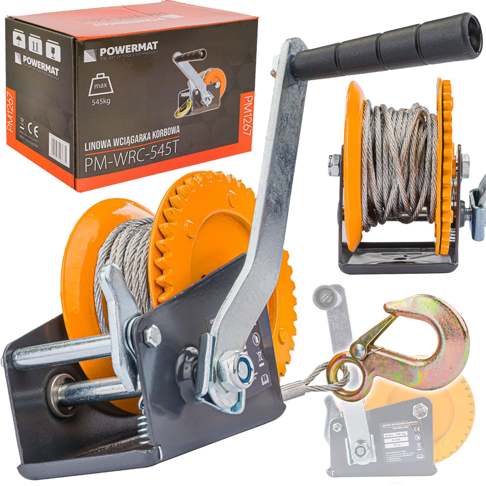 LINOWA WCIĄGARKA WYCIĄGARKA KORBOWA RĘCZNA 545KG 10M NA KORBĘ