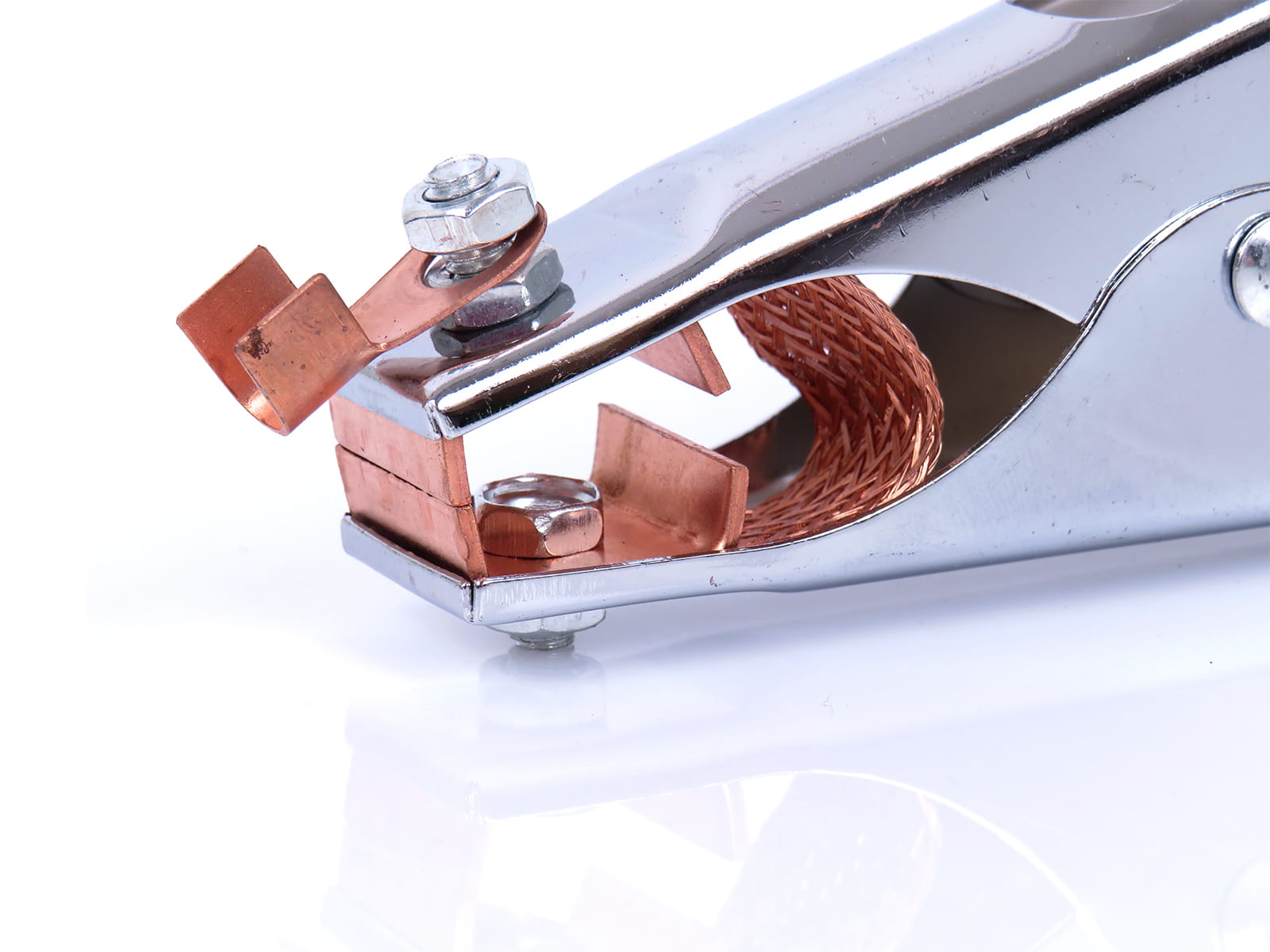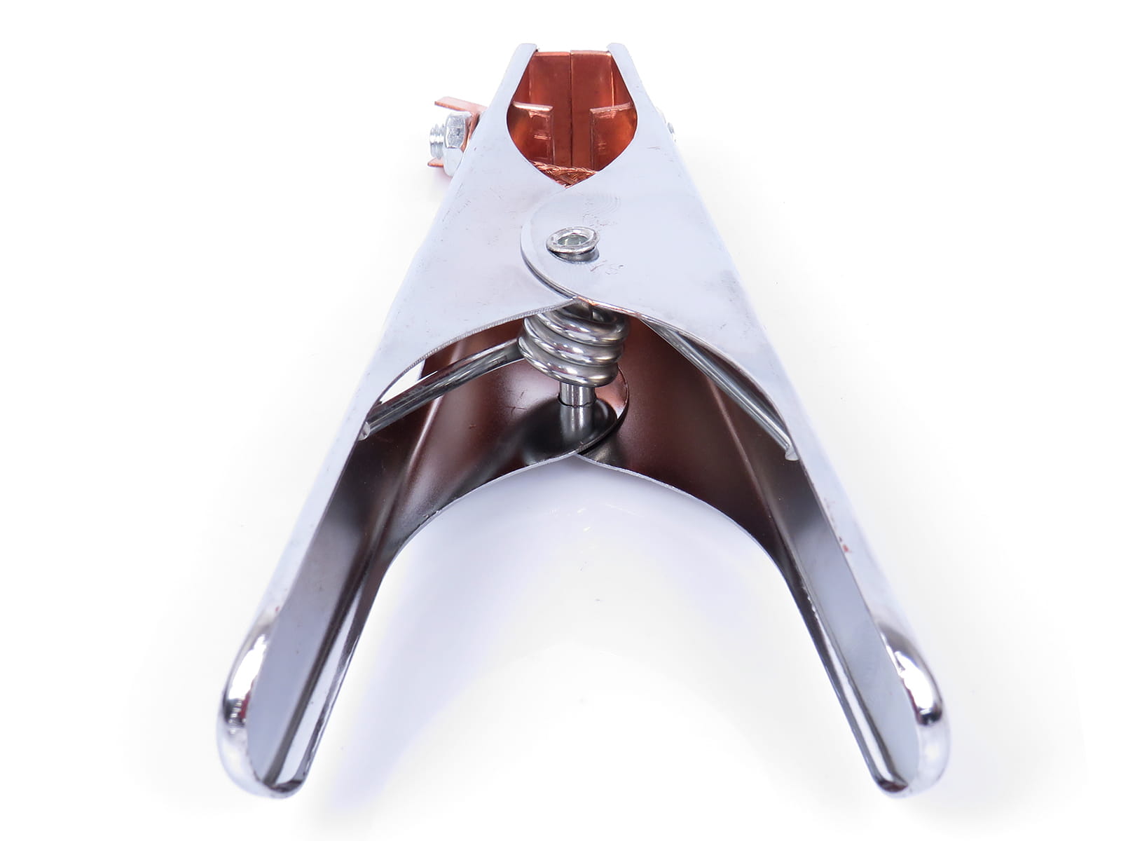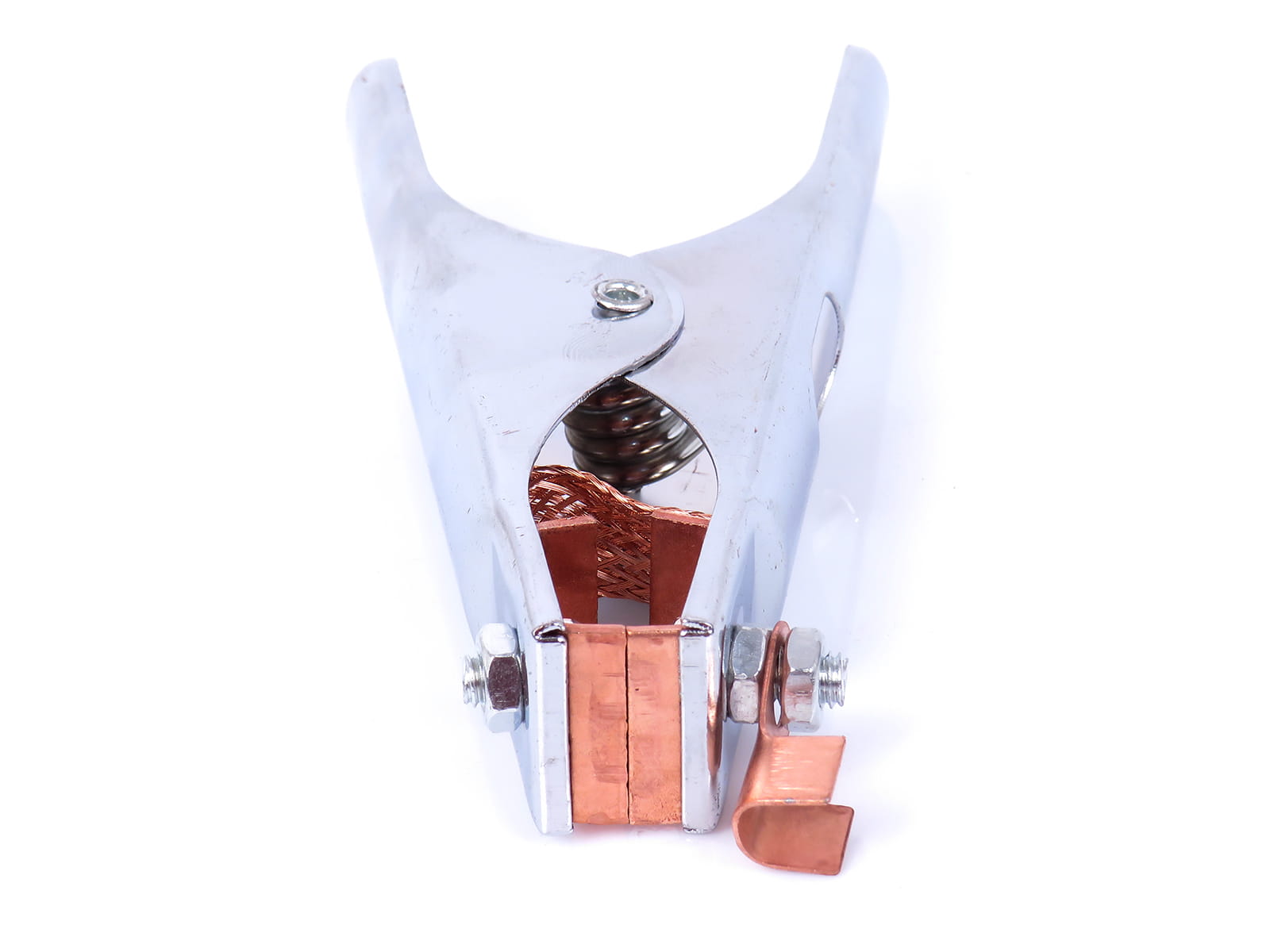 Produkt wykonany jest z solidnego metalu, odpornego na uszkodzenia mechaniczne oraz działanie wysokich temperatur. Wyposażony został w mocny zacisk sprężynowy oraz miedziany przewód taśmowy, co gwarantuje dobre przewodnictwo i trwałość połączenia elektrycznego.