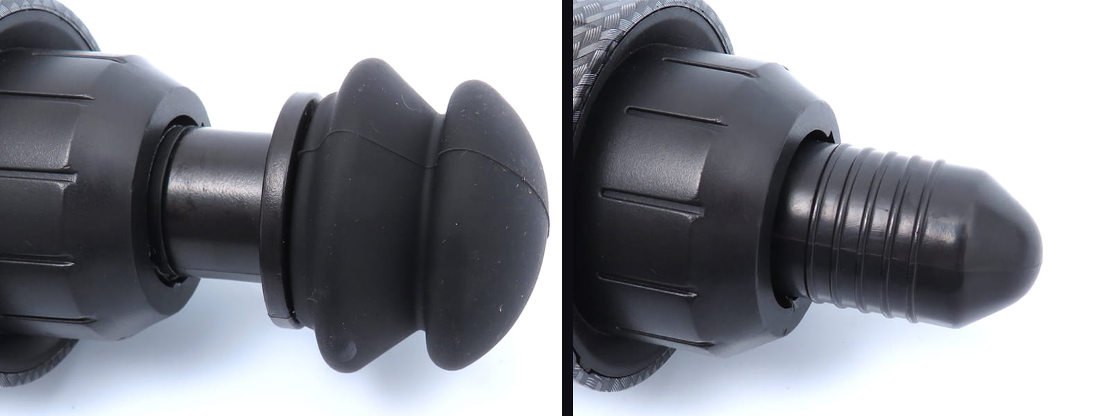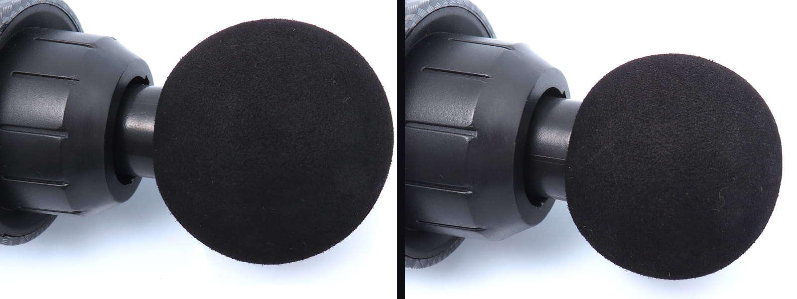 - Okrągłe – najbardziej uniwersalna ze wszystkich końcówek, wykonana z trwałej pianki nie ulegającej odkształceniom. Głowica przeznaczona do masażu wszystkich części ciała i używana do powierzchownej pracy o umiarkowanej intensywności.