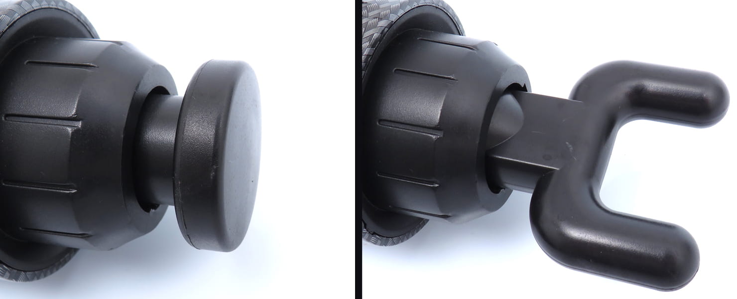 - Widełki – końcówka wykonana z twardego tworzywa, przeznaczona do pracy na mięśniach węższych i długich (np. prostownik grzbietu, czworoboczny grzbietu, brzuchaty łydki). Sprawdza się również w terapii tkanek w okolicy ścięgna Achillesa, gdzie umożliwia pracę na tkance omijając ścięgno. Zaokrąglone zakończenia końcówki sprawiają, że końcówka płynnie przesuwa się po ciele i dokładnie dociera do tych grup mięśniowych, do których jest przeznaczona.