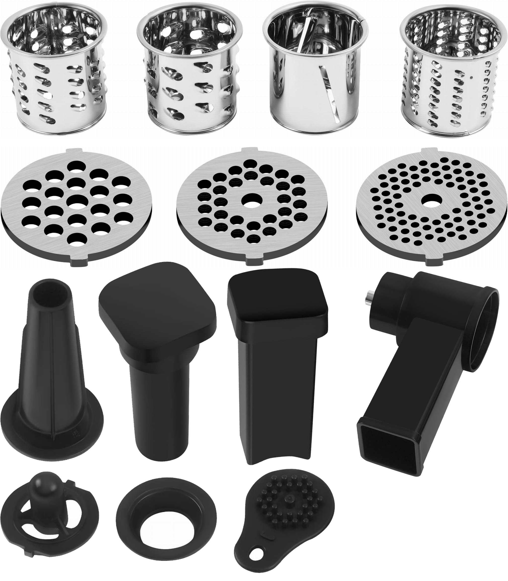 - Rozszerzone możliwości – nasadki do kiełbas i typu „kebbe” pozwalają przygotowywać domowe wyroby