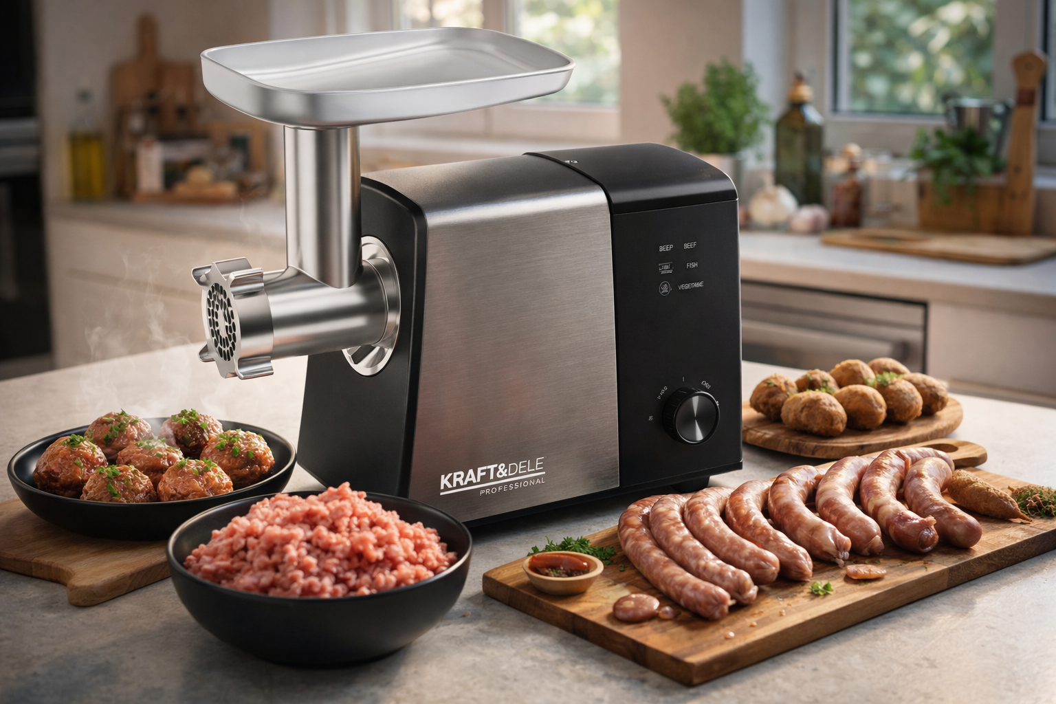 Maszynka do mięsa o mocy 2200 W to wydajne i wszechstronne urządzenie kuchenne, przeznaczone do szybkiego przygotowywania domowych potraw. Dzięki solidnej konstrukcji oraz bogatemu zestawowi akcesoriów umożliwia nie tylko mielenie mięsa, ale także obróbkę warzyw i przygotowywanie własnych wyrobów, takich jak kiełbasy czy dania typu kebbe. Rozwiązania techniczne zastosowane w urządzeniu przekładają się na komfort pracy oraz oszczędność czasu.