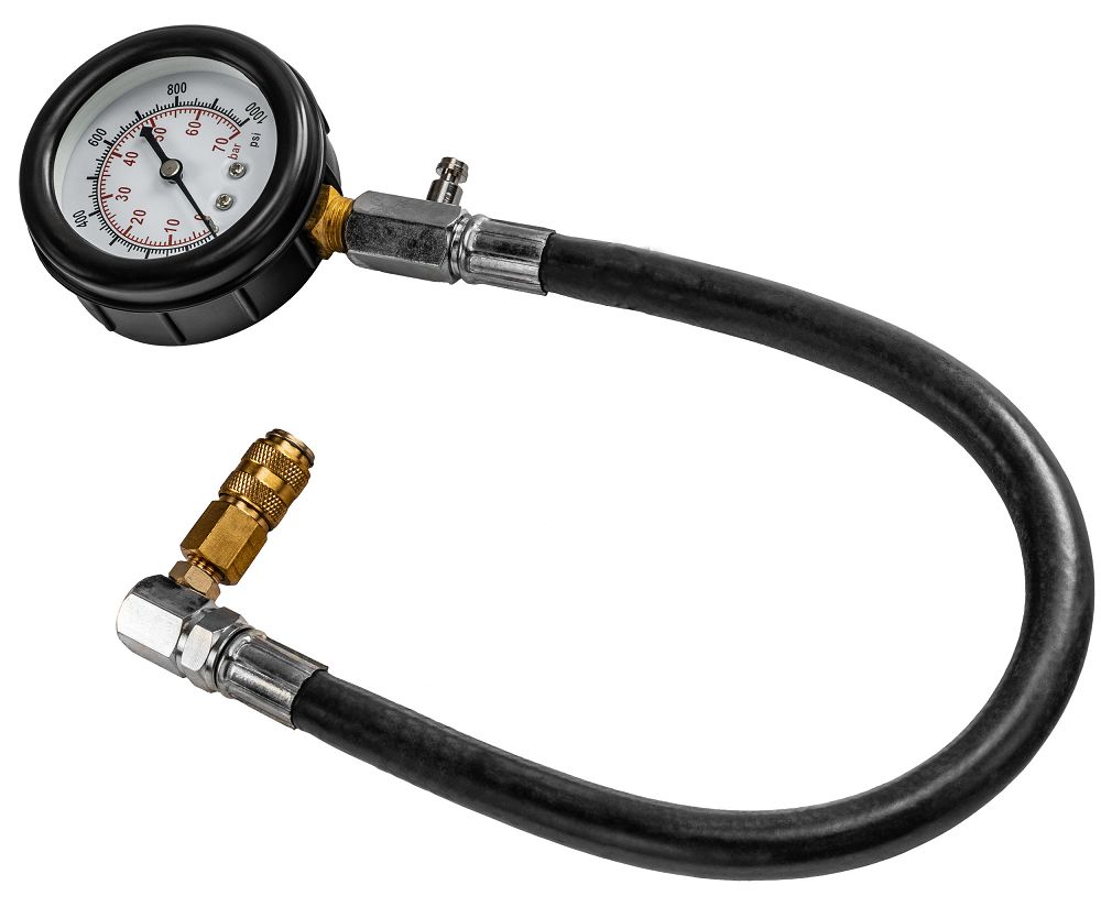 - Precyzyjny pomiar – zakres 0–70 bar (0–1000 psi) umożliwia dokładną ocenę ciśnienia sprężania w silnikach diesla.