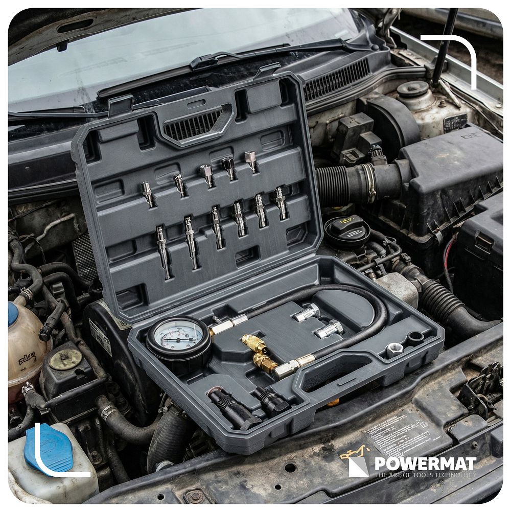 Zestaw znajduje zastosowanie w warsztatach samochodowych, serwisach mechanicznych oraz w diagnostyce pojazdów użytkowych i maszyn wyposażonych w silniki wysokoprężne. Umożliwia kontrolę stanu cylindrów, wykrywanie spadków kompresji oraz identyfikację potencjalnych usterek bez konieczności ingerencji w konstrukcję silnika.