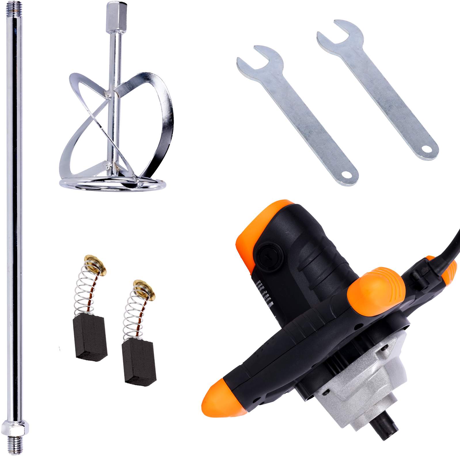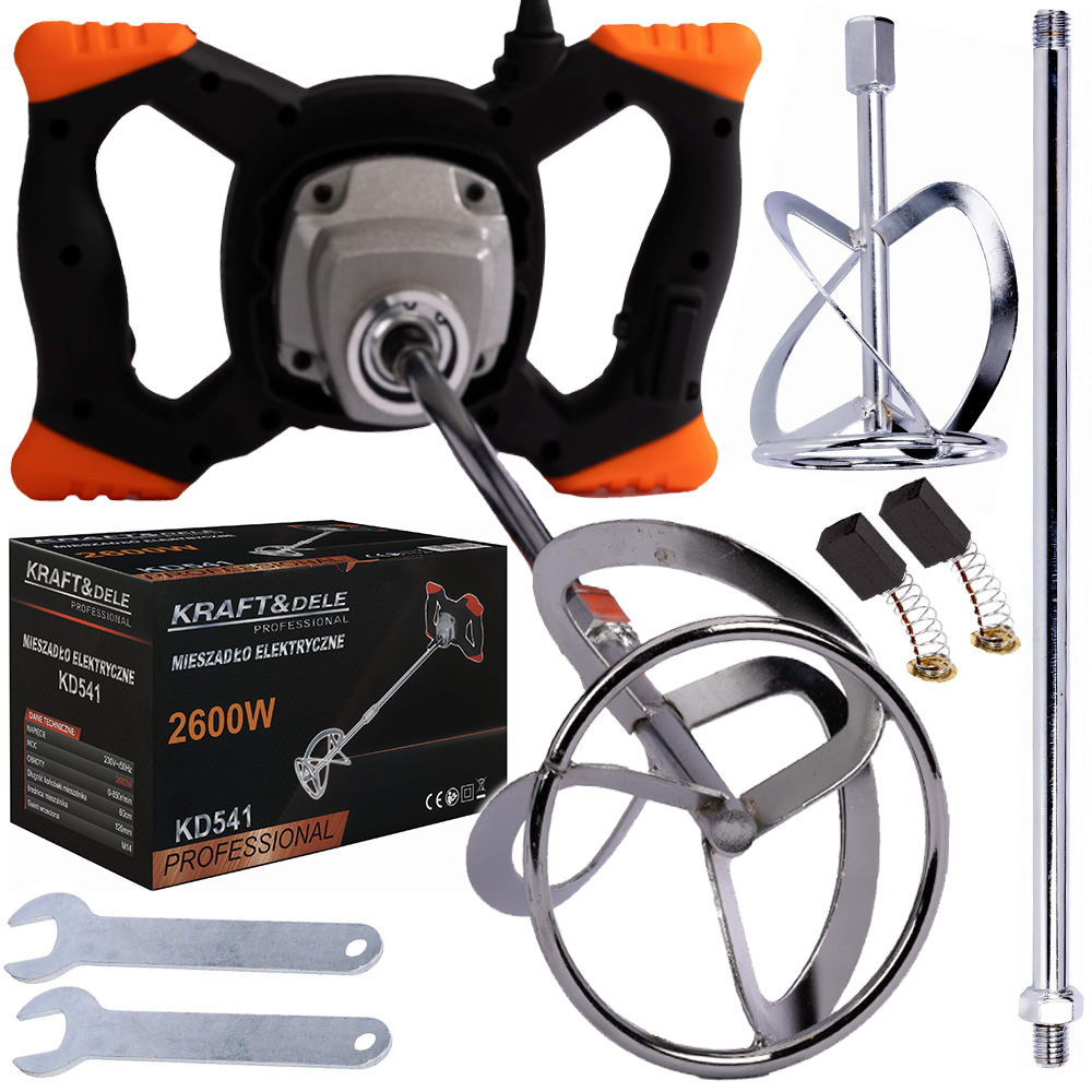 - Mieszalnik w zestawie – urządzenie wyposażono w mieszalnik o średnicy 120 mm, co pozwala rozpocząć pracę bez konieczności dokupowania dodatkowych akcesoriów.