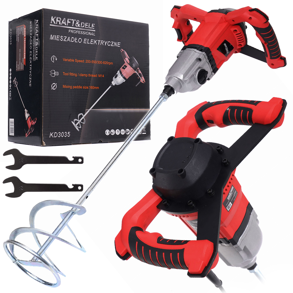 Mieszadło KRAFT&DELE to niezastąpione urządzenie na placu budowy, dzięki, któremu wymieszasz wszystkie półprodukty potrzebne do przygotowania najwyżej jakości zapraw murarskich i tynkarskich. Niezbędne urządzenie podczas domowych remontów i prac budowlanych.