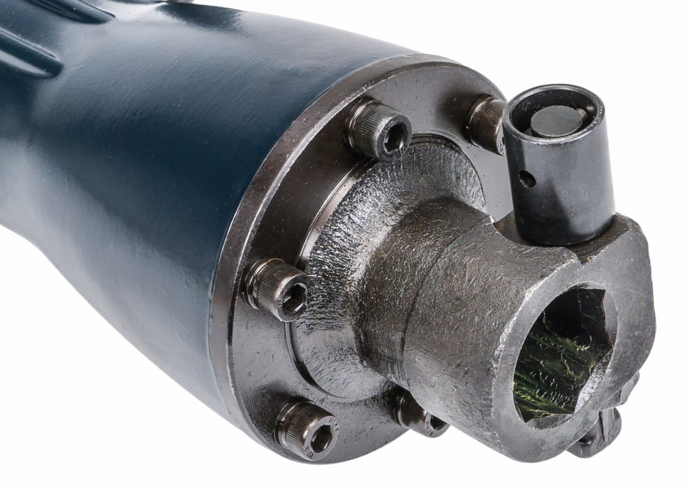 - Pewne mocowanie gwarantuje zastosowana w uchwycie blokada ze sworzniem, jest to istotne z uwagi na dużą siłę udaru młota.