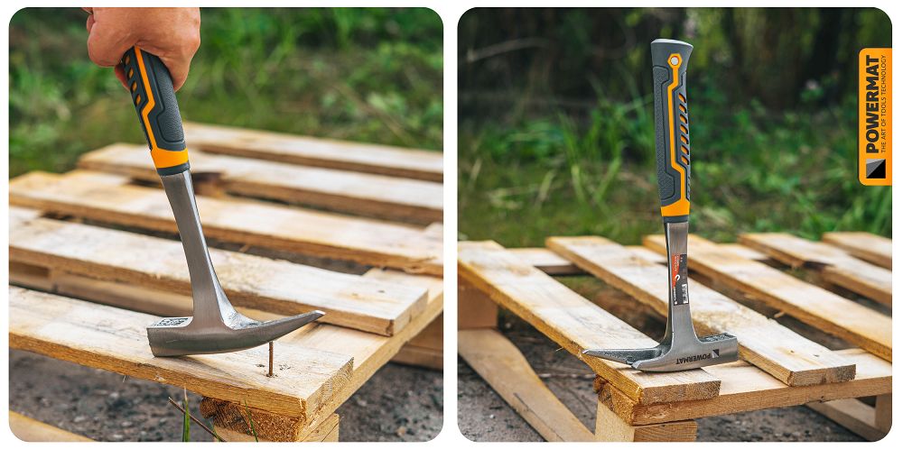 Obuch o wadze 600 g umożliwia skuteczne wbijanie gwoździ, a tylna część w formie klina z dwoma kłami ułatwia ich szybkie usuwanie bez nadmiernego uszkadzania drewna. Specjalny magnetyczny rowek pozwala na wstępne osadzanie gwoździa jedną ręką, co zwiększa precyzję i bezpieczeństwo, zwłaszcza podczas pracy na wysokości.