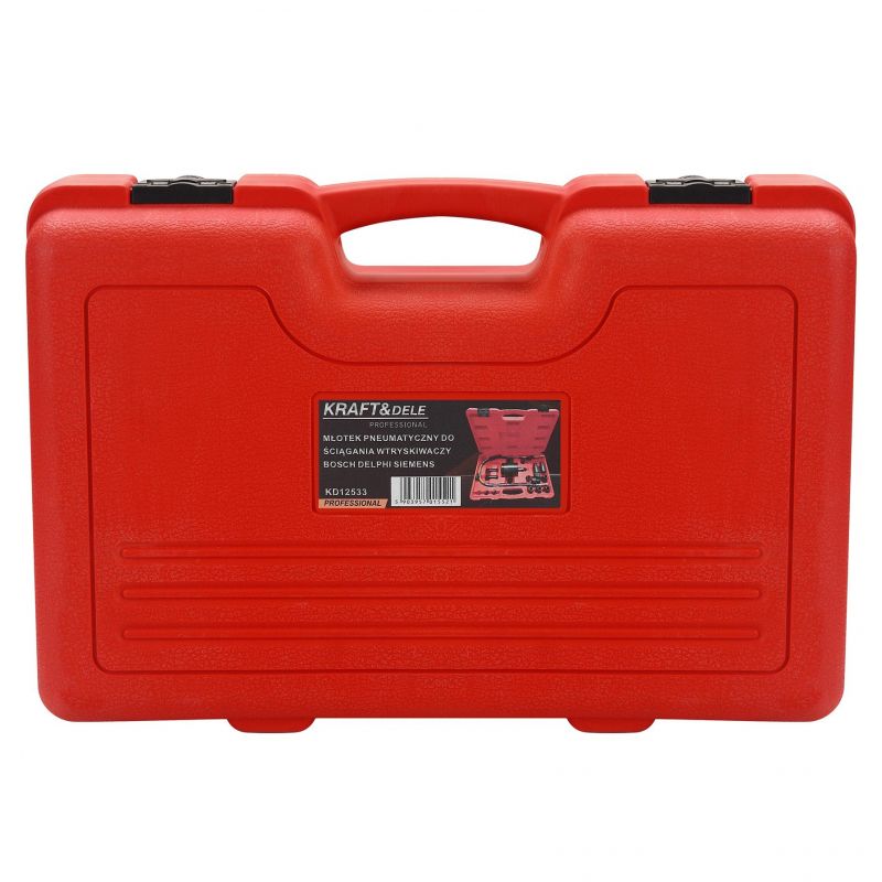 Dzięki dołączonym adapterom w różnych rozmiarach narzędzie jest kompatybilne z wtryskiwaczami najczęściej spotykanych producentów, takich jak Bosch, Delphi czy Siemens. Całość została umieszczona w solidnej walizce transportowej, ułatwiającej przechowywanie i bezpieczne przenoszenie zestawu.