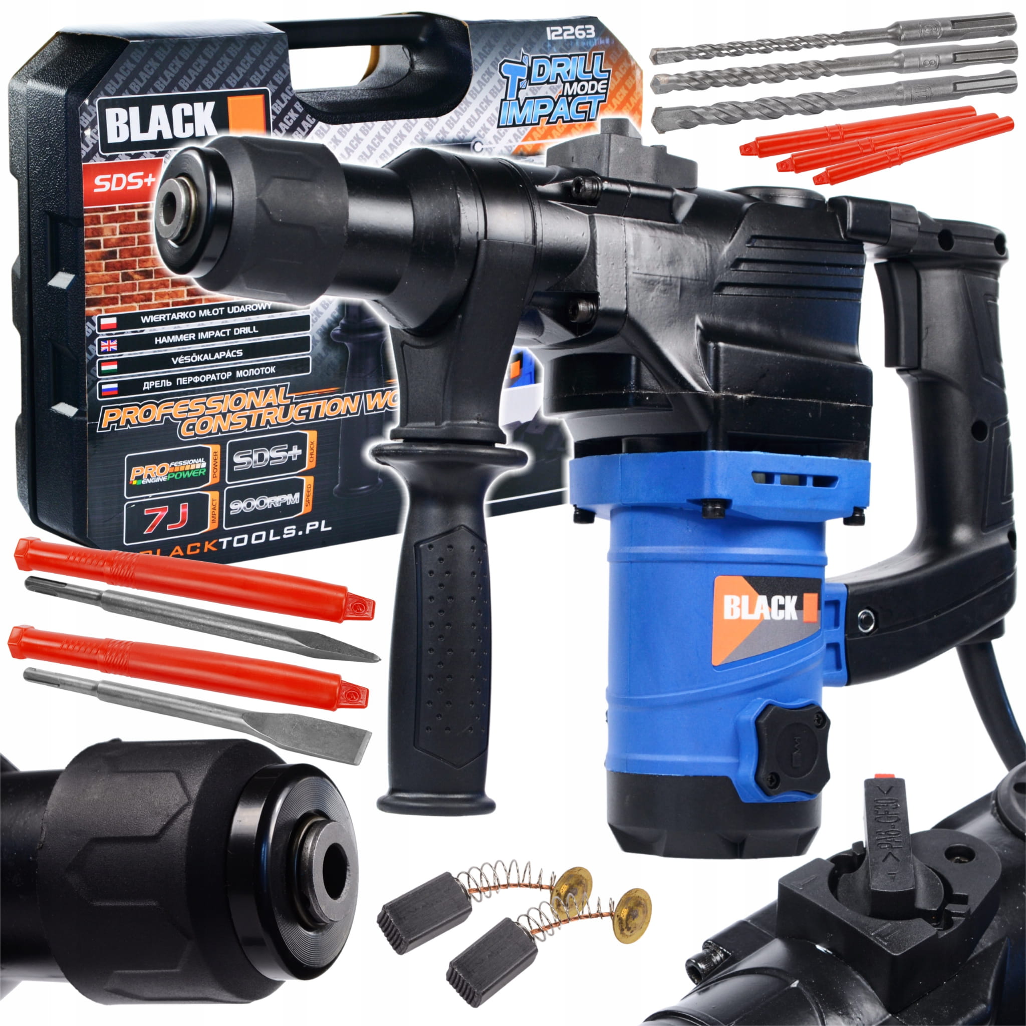 Kompaktowa młotowiertarka BLACK napędzana szczotkowym silnikiem o mocy 1450W.