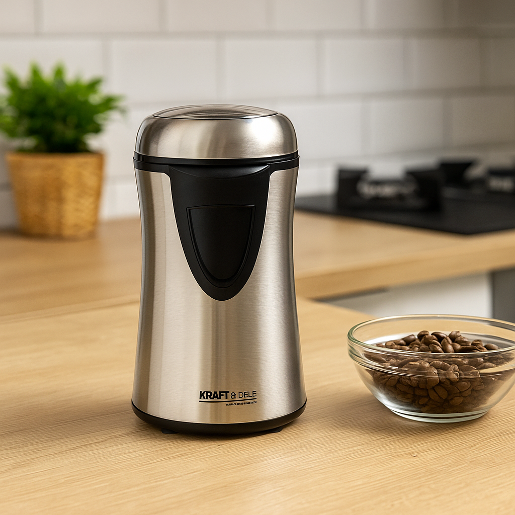 Połączenie eleganckiego designu, trwałości oraz wysokiej funkcjonalności. Urządzenie zostało zaprojektowane z myślą o codziennym użytkowaniu – pozwala na szybkie i równomierne mielenie ziaren kawy, zachowując ich głęboki aromat i świeżość. Dzięki solidnej konstrukcji ze stali nierdzewnej oraz mocy 300 W, młynek zapewnia wydajność i niezawodność przez długi czas.