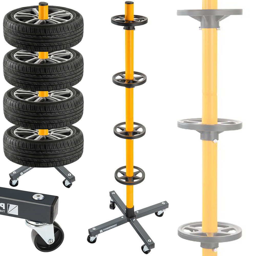 Stojak na koła to praktyczne rozwiązanie do przechowywania kompletu opon z felgami w garażu, warsztacie lub pomieszczeniu gospodarczym. Konstrukcja umożliwia ustawienie czterech kół w jednej, stabilnej pozycji, co ułatwia organizację przestrzeni i pomaga zachować porządek między sezonami. Mobilna i składana forma pozwala dopasować sposób użytkowania do aktualnych potrzeb.