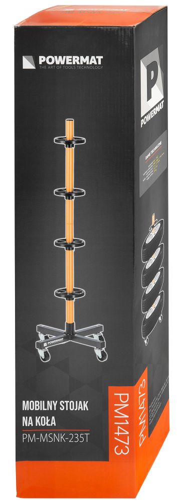 - Stabilna konstrukcja – stojak wykonano ze stali oraz elementów PVC, co zapewnia odpowiednią sztywność i trwałość podczas przechowywania kół.