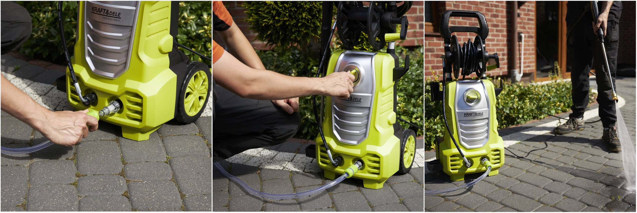 Myjka ciśnieniowa marki KRAFT&DELE to niezwykle przydatne urządzenie w każdym gospodarstwie domowym, garażu oraz warsztacie. Dzięki niej przywrócisz blask swojemu samochodowi, kostce brukowej oraz wielu innym.