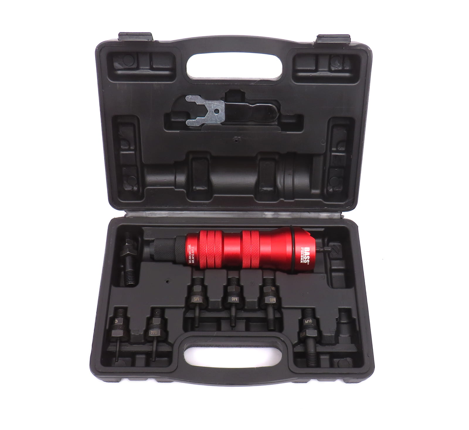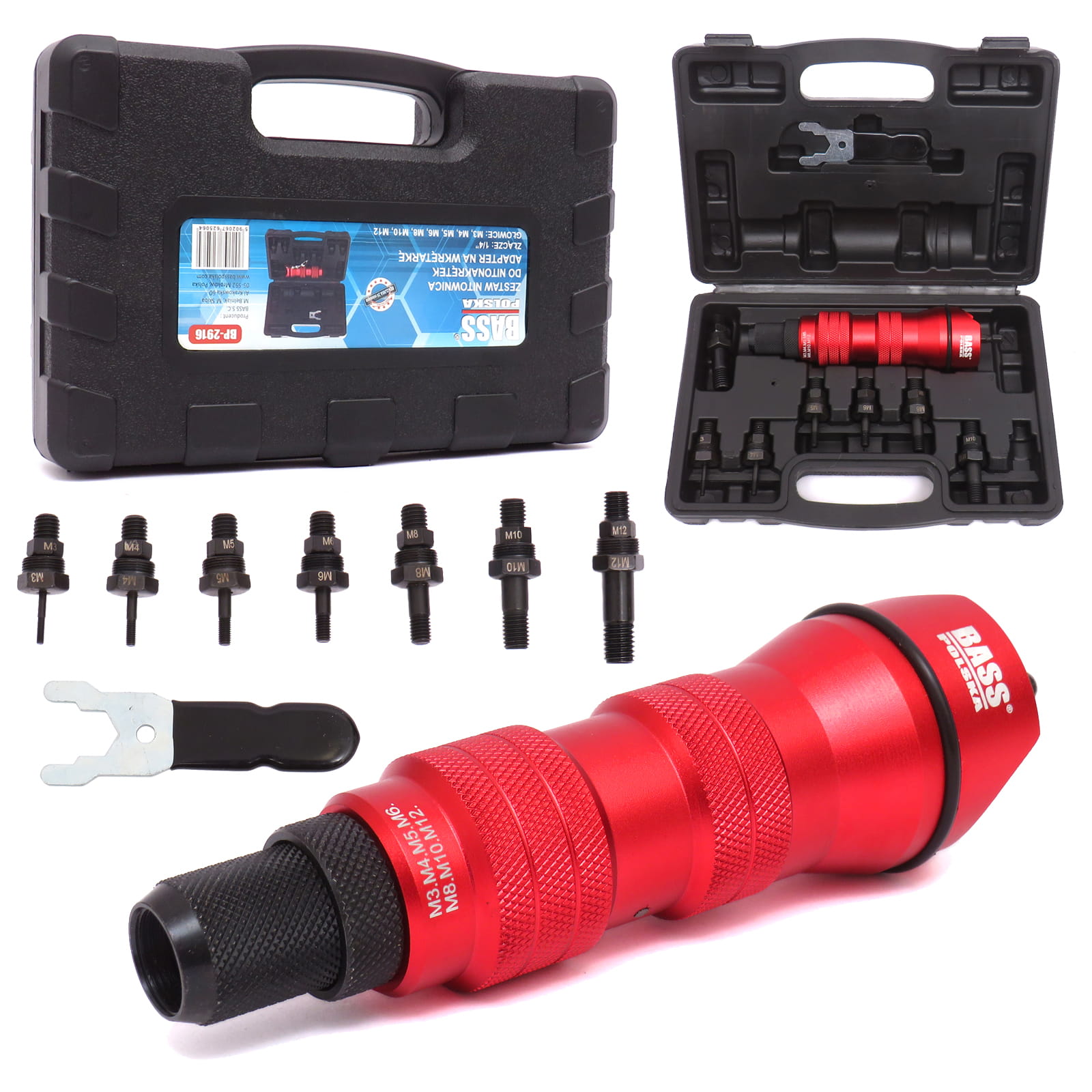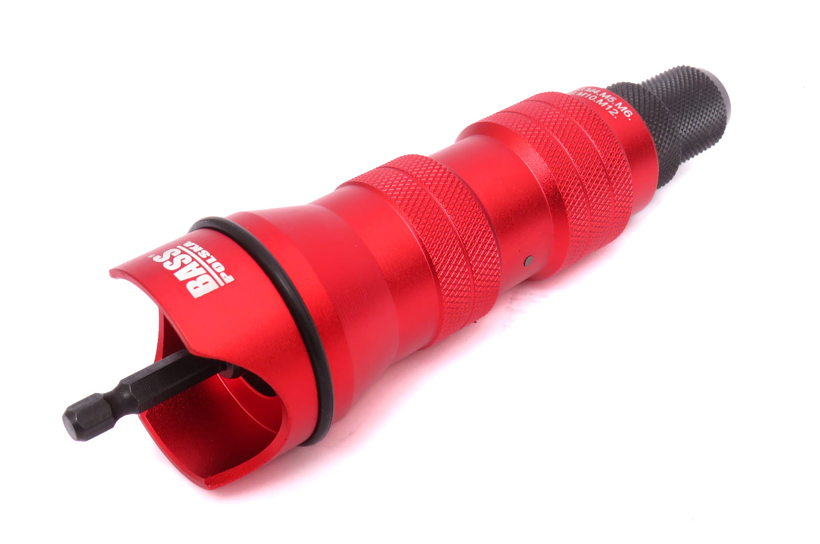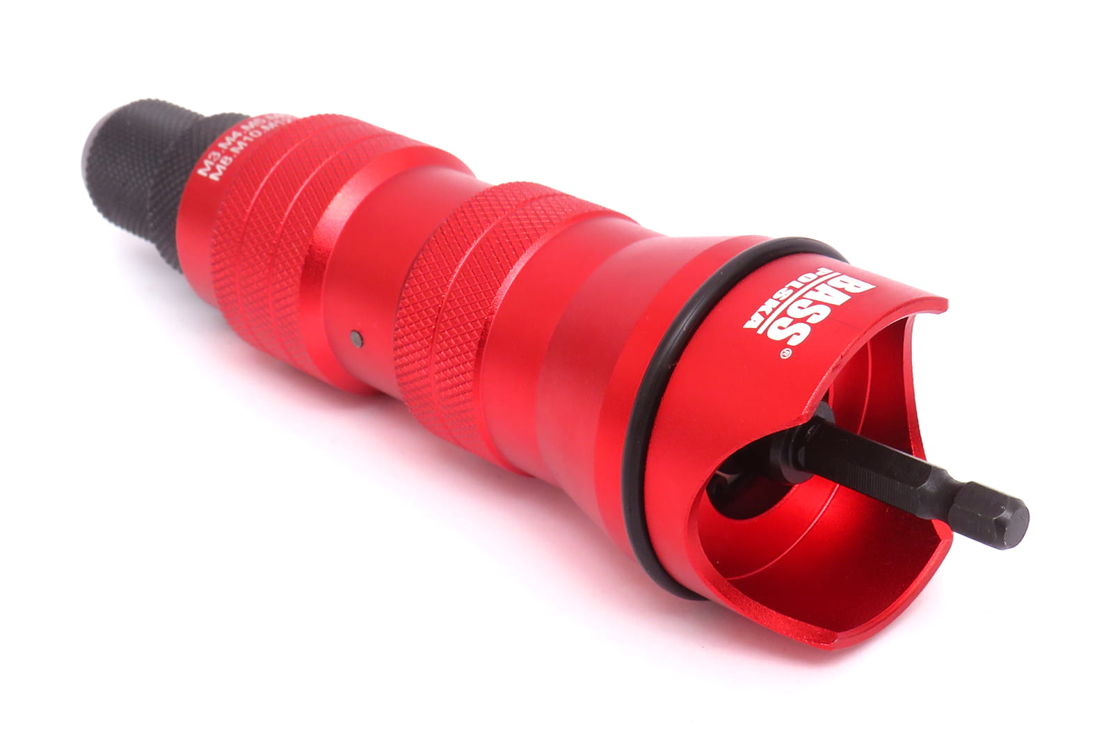 Nitownica na wkrętarkę Bass Polska w łatwy i szybki sposób wykonuje mocowania za pomocą nitonakrętek. Adapter z nitownicą na wkrętarkę przeznaczony jest do nitonakrętek ze stali, stali nierdzewnej, miedzi i aluminium.