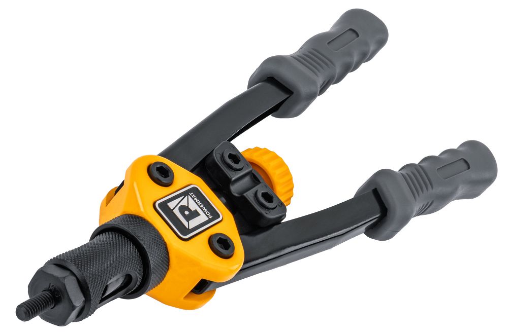 Profilowane rękojeści zapewniają pewny chwyt oraz dobrą kontrolę nad narzędziem podczas zaciskania. Ergonomiczny kształt uchwytów poprawia stabilność pracy i zmniejsza ryzyko poślizgu dłoni przy dużym docisku. Sztywna konstrukcja korpusu wspiera precyzyjne prowadzenie trzpienia i sprzyja zachowaniu osiowości podczas osadzania nitonakrętek.