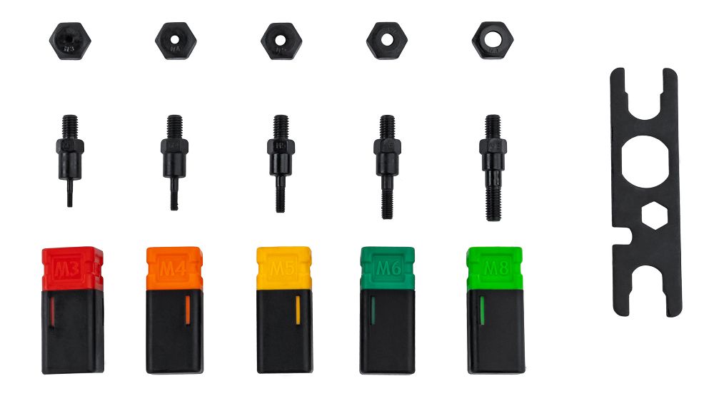- Wymienne końcówki robocze w rozmiarach M3, M4, M5, M6 oraz M8