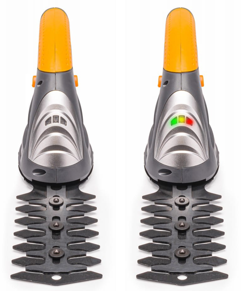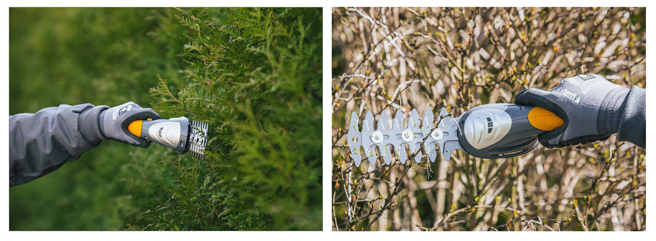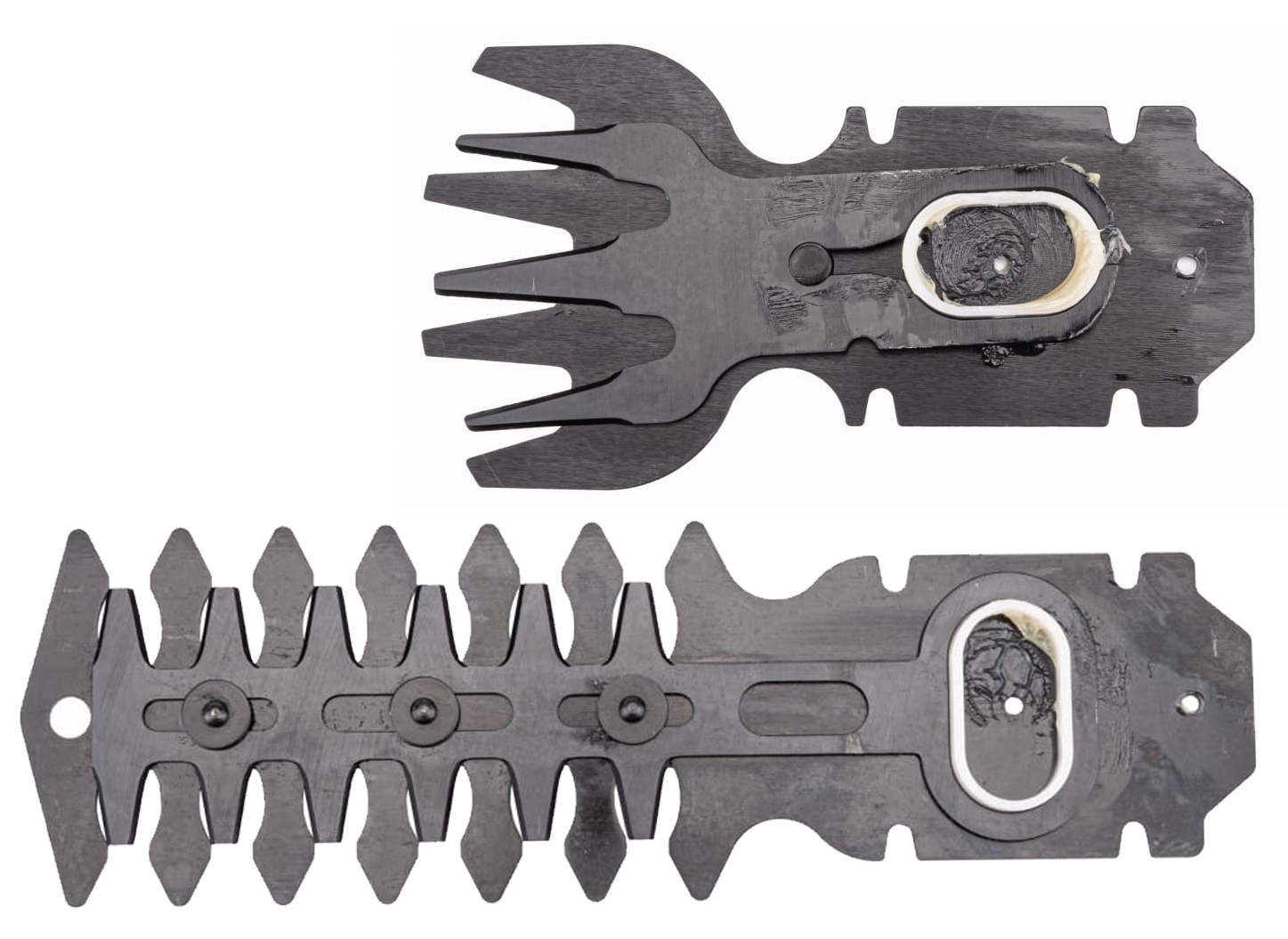 Znajduje się ostrze do przycinania trawy o szerokości 83 mm oraz ostrze do przycinania krzewów o długości 120 mm oraz odstępie między zębami 6 mm. Zmiana ostrza odbywa się za pomocą systemu beznarzędziowego, co pozwala na szybką zmianę nożyc do trawy na nożyce do krzewów.
