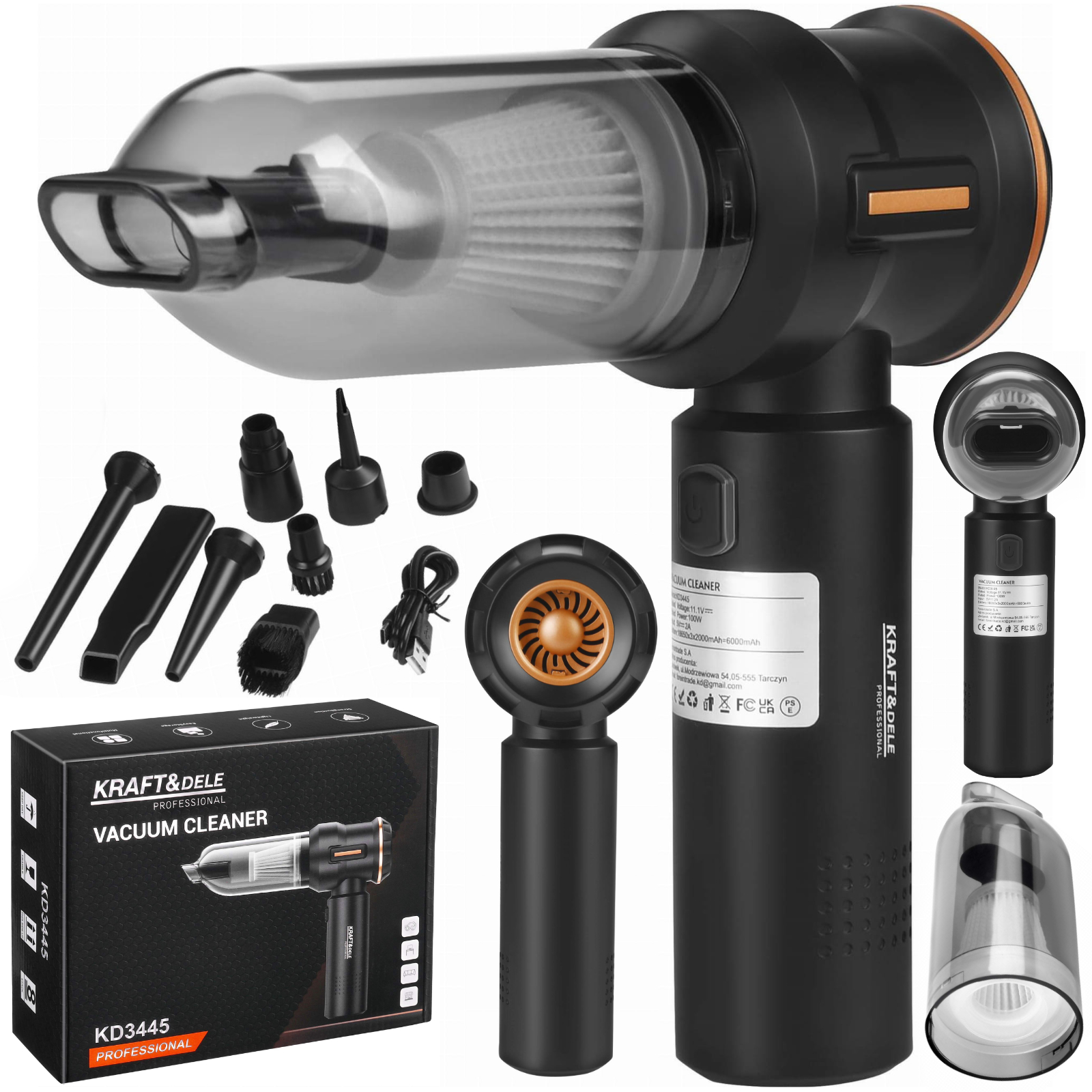 ODKURZACZ AKUMULATOROWY 100W 6000MAH 3W1 HEPA USB TYPU C 0,2L KOMPATYBILNY