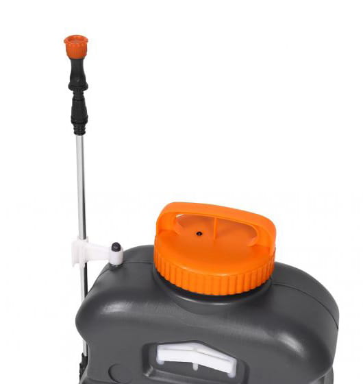 Opryskiwacz wyposażony jest w zbiornik o pojemności 16 litrów, wykonany z trwałego materiału odpornego na działanie chemikaliów i odbarwienia. Wydajna membranowa pompa generuje stabilne ciśnienie w zakresie od 1 do 4,5 bara i jest uruchamiana za pomocą prostego włącznika. Urządzenie posiada metalową lancę teleskopową z wymiennymi końcówkami, w tym również lancę czterodyszową przeznaczoną do poziomych oprysków rzędowych, co umożliwia precyzyjne dostosowanie strumienia i kierunku rozpylania.