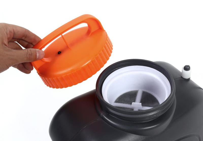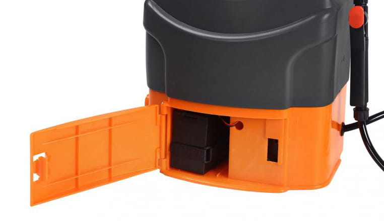 Dodatkowe udogodnienia obejmują uchwyt do zamocowania lancy przy zbiorniku oraz praktyczną klapkę rewizyjną, która umożliwia łatwe wyjęcie akumulatora w celu jego naładowania. Tylny panel urządzenia został zaprojektowany z perforacją, co zapewnia lepszą cyrkulację powietrza i większy komfort podczas pracy. Regulowane szelki nośne pozwalają na indywidualne dopasowanie opryskiwacza do użytkownika. Wewnętrzny filtr chroni dysze przed zapychaniem, a zawór bezpieczeństwa zabezpiecza system przed nadmiernym ciśnieniem, co dodatkowo zwiększa niezawodność i bezpieczeństwo użytkowania.