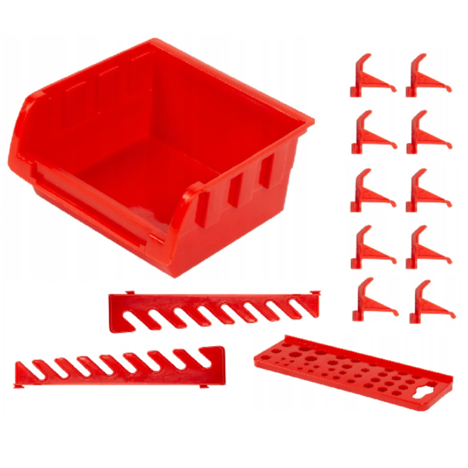 - Kolor pojemników, uchwytów i wieszaków: Czerwony