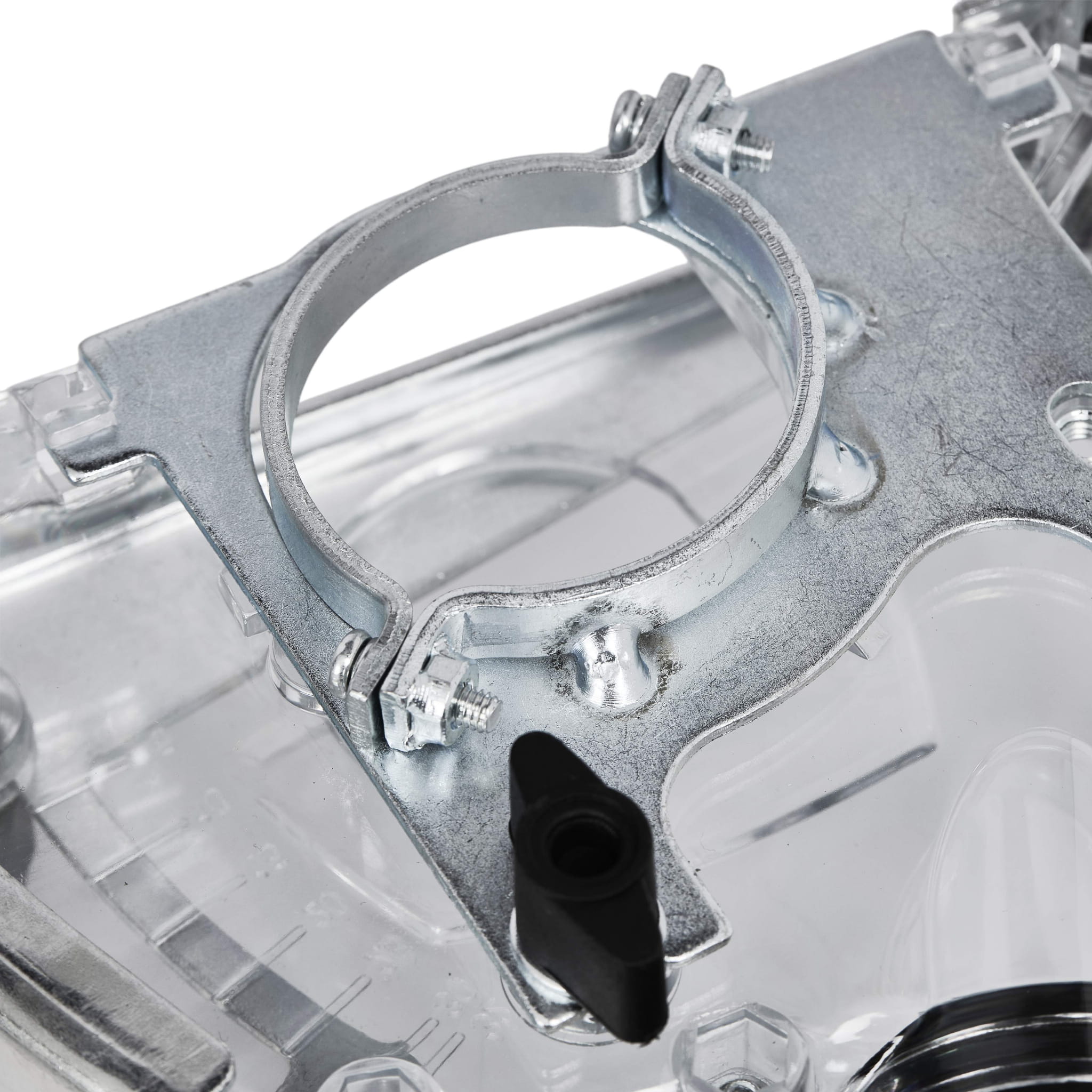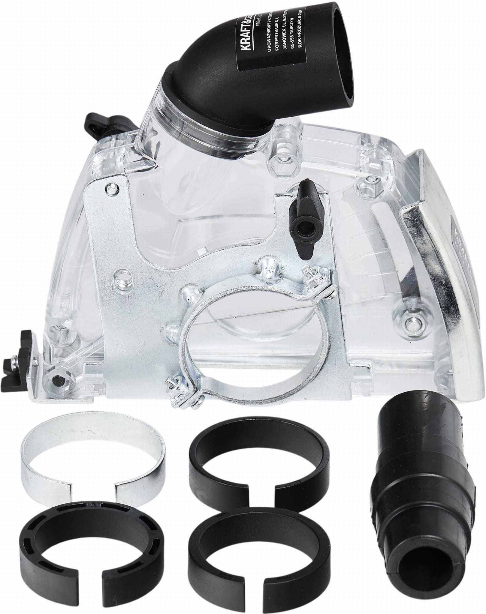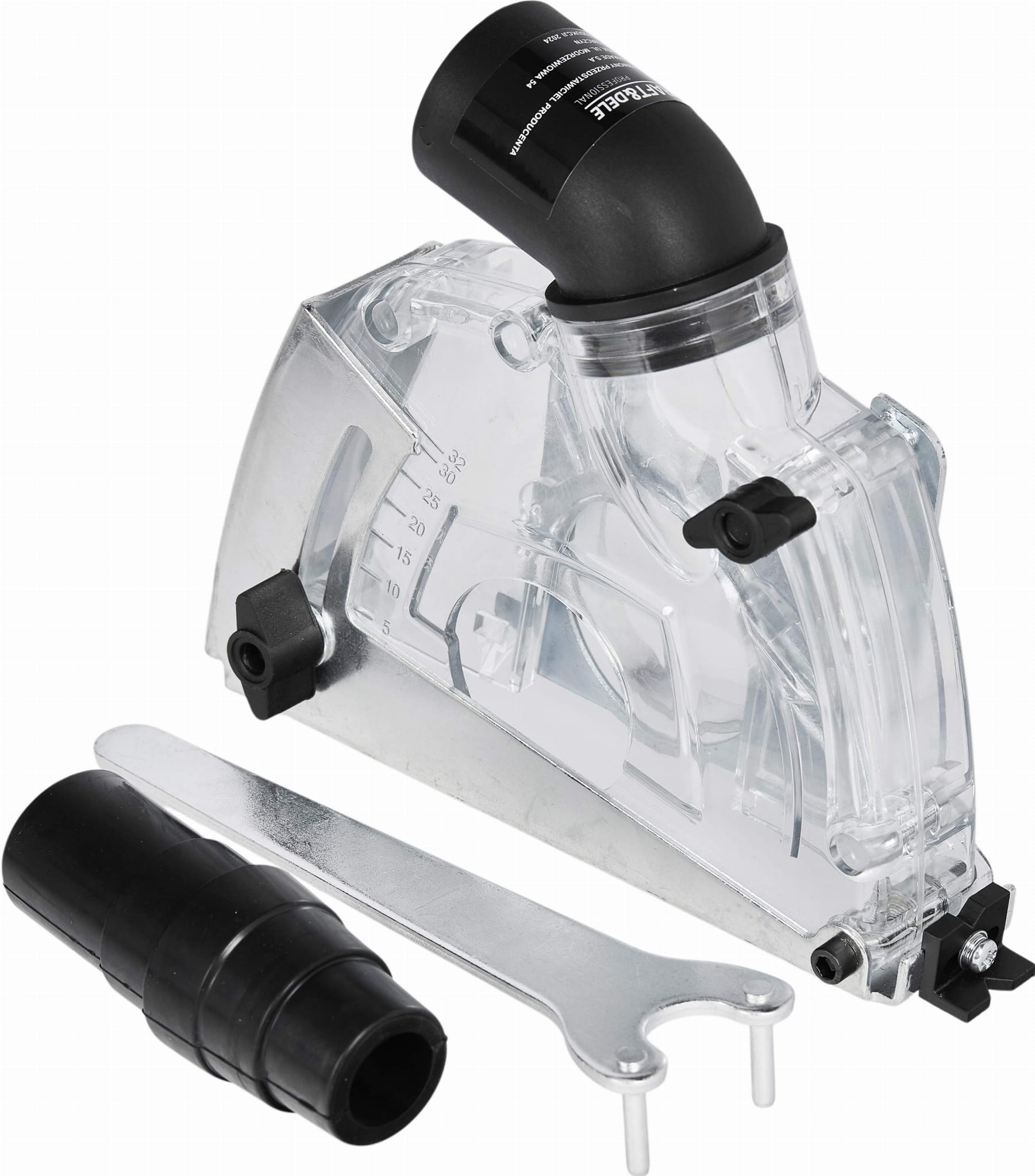Konstrukcja osłony została zaprojektowana z myślą o wygodzie użytkowania i trwałości. Przejrzysta obudowa umożliwia dokładne obserwowanie miejsca pracy, a solidne materiały zapewniają odporność na intensywną eksploatację. System regulacji oraz łatwy montaż adapterów pozwalają na szybkie przygotowanie narzędzia do pracy.