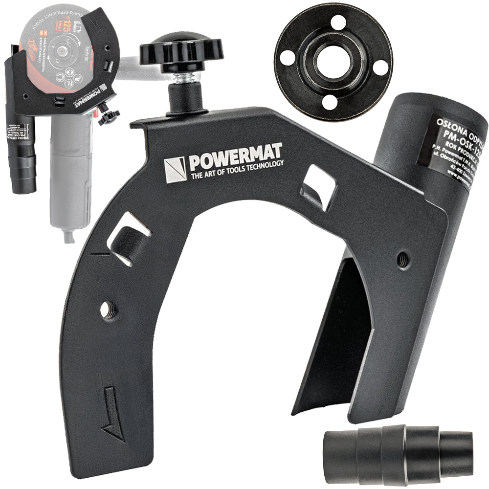 Obudowa została wykonana z odpornego tworzywa technicznego, zapewniającego sztywność i stabilność nawet przy intensywnej eksploatacji. Konstrukcja jest szczelna, co zwiększa efektywność odsysania pyłu. Jednocześnie niewielka waga ułatwia manewrowanie narzędziem, a przemyślany kształt osłony chroni operatora przed odpryskami.