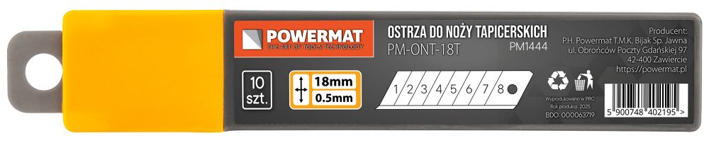 - Uniwersalność – ostrza pasują do większości noży tapicerskich 18 mm dostępnych na rynku.