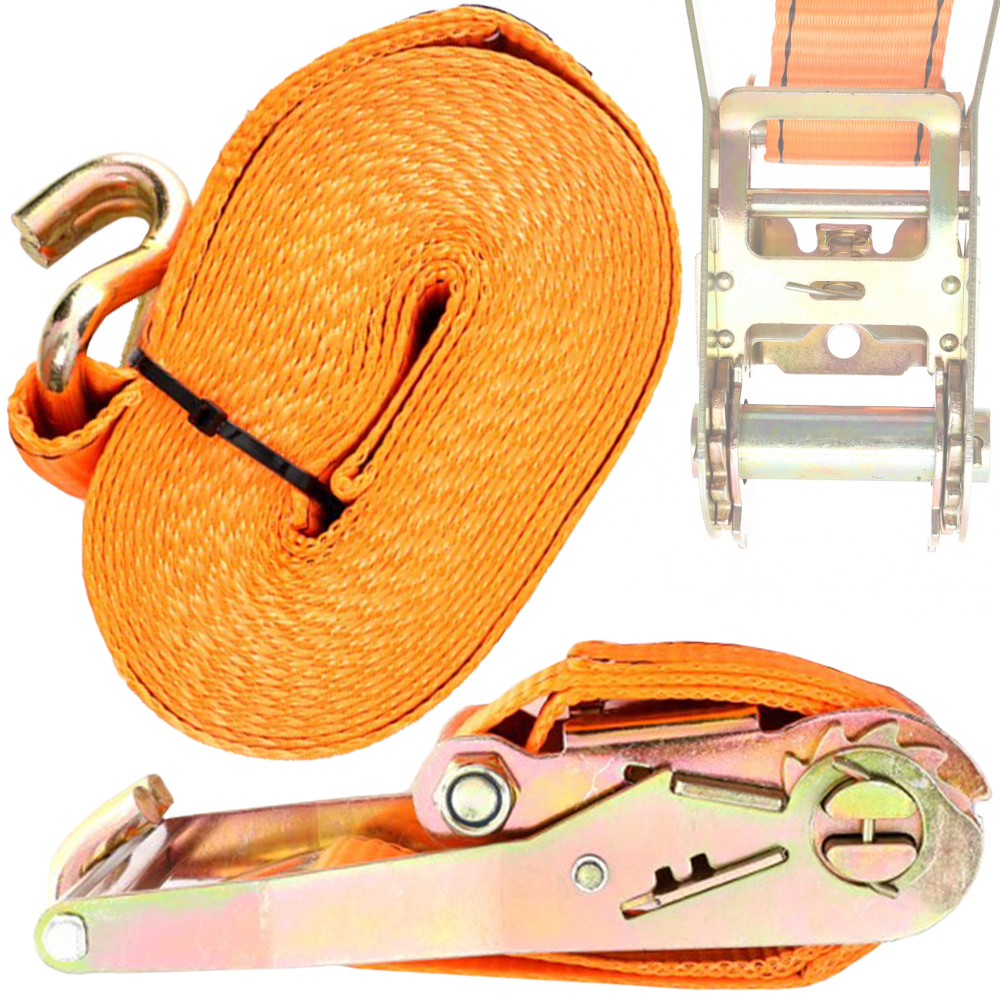 Pas wykonano z mocnego, elastycznego poliestru o wysokiej odporności na rozciąganie. Materiał jest odporny na działanie wilgoci, promieniowanie UV i zmienne temperatury, co zapewnia długą trwałość nawet przy intensywnym użytkowaniu. Metalowa klamra z mechanizmem napinającym została zaprojektowana tak, aby umożliwić łatwe i pewne zabezpieczenie ładunku, a jednocześnie zapobiec przypadkowemu luzowaniu się pasa w trakcie transportu.
