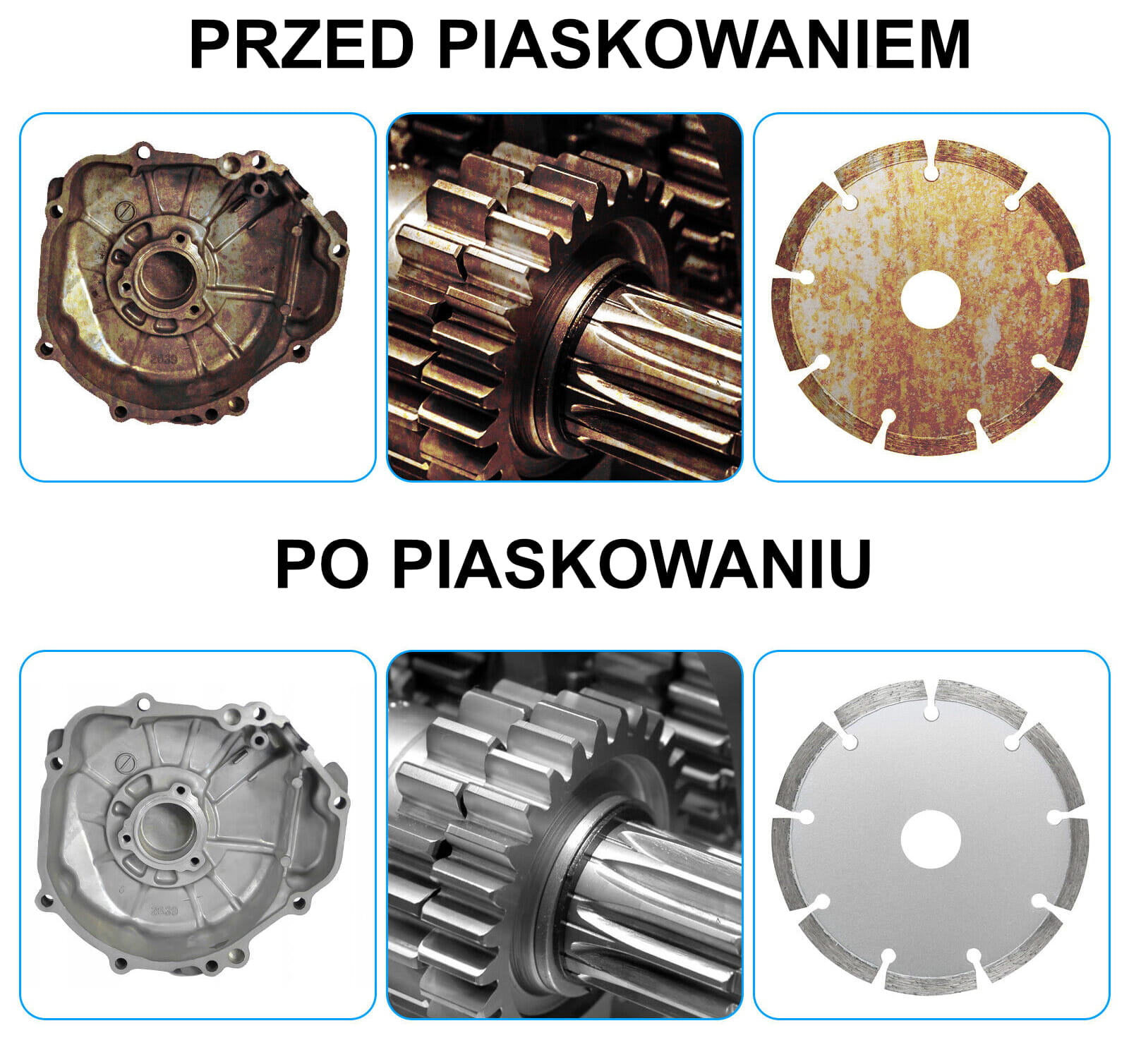 - Piaskarka idealnie nadaje się do warsztatu, produkcji, renowacji, konserwacji i wielu innych