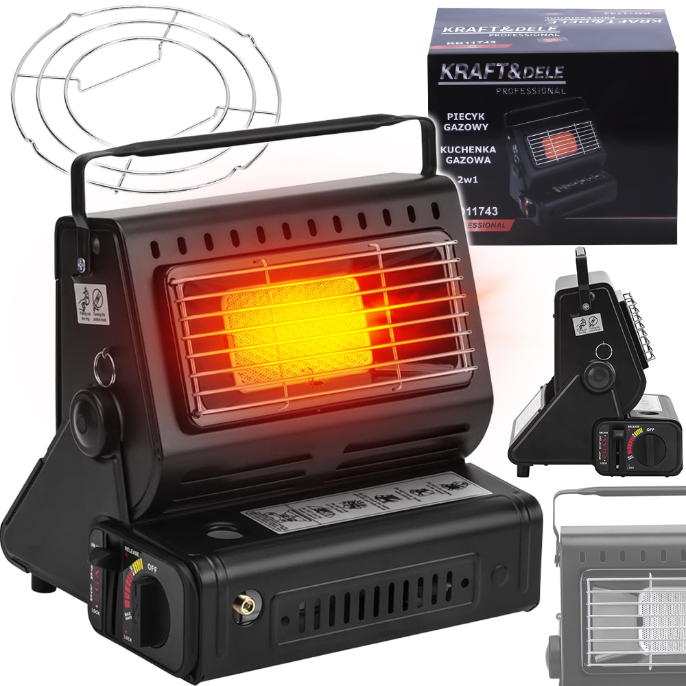 Kuchenka gazowa 2w1 to praktyczne i kompaktowe urządzenie, które łączy funkcje piecyka grzewczego oraz kuchenki turystycznej. Dzięki przemyślanej konstrukcji i prostej obsłudze doskonale sprawdza się zarówno w podróży, jak i podczas biwaków, kempingów, w domkach letniskowych czy warsztatach. Wysoka moc grzewcza, niskie zużycie paliwa oraz system zapłonu piezoelektrycznego gwarantują wygodę użytkowania i niezawodność w każdych warunkach terenowych.
