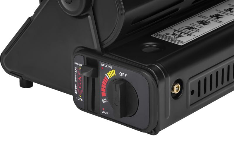 - Zapłon piezoelektryczny – pozwala na błyskawiczne uruchomienie urządzenia bez konieczności używania zapałek lub zapalniczki.