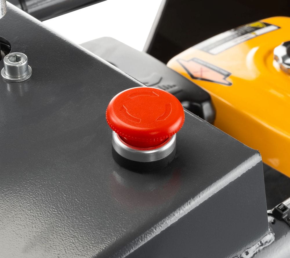 Piła została wyposażona w przycisk bezpieczeństwa, który pozwala na natychmiastowe wyłączenie urządzenia w sytuacjach awaryjnych. Dzięki temu operator może szybko zareagować, co zwiększa poziom bezpieczeństwa podczas pracy.