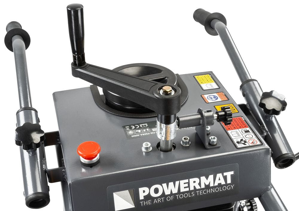 Regulacja głębokości cięcia do 185 mm odbywa się płynnie za pomocą ręcznej korby, co pozwala na dostosowanie narzędzia do różnych zadań. Dzięki temu operator ma pełną kontrolę nad pracą urządzenia, co zapewnia dokładność i komfort użytkowania. Piła została wyposażona w prowadnicę, która ułatwia precyzyjne cięcie wzdłuż wyznaczonej linii. Dzięki temu możliwe jest zachowanie dokładności oraz uzyskanie równych krawędzi.