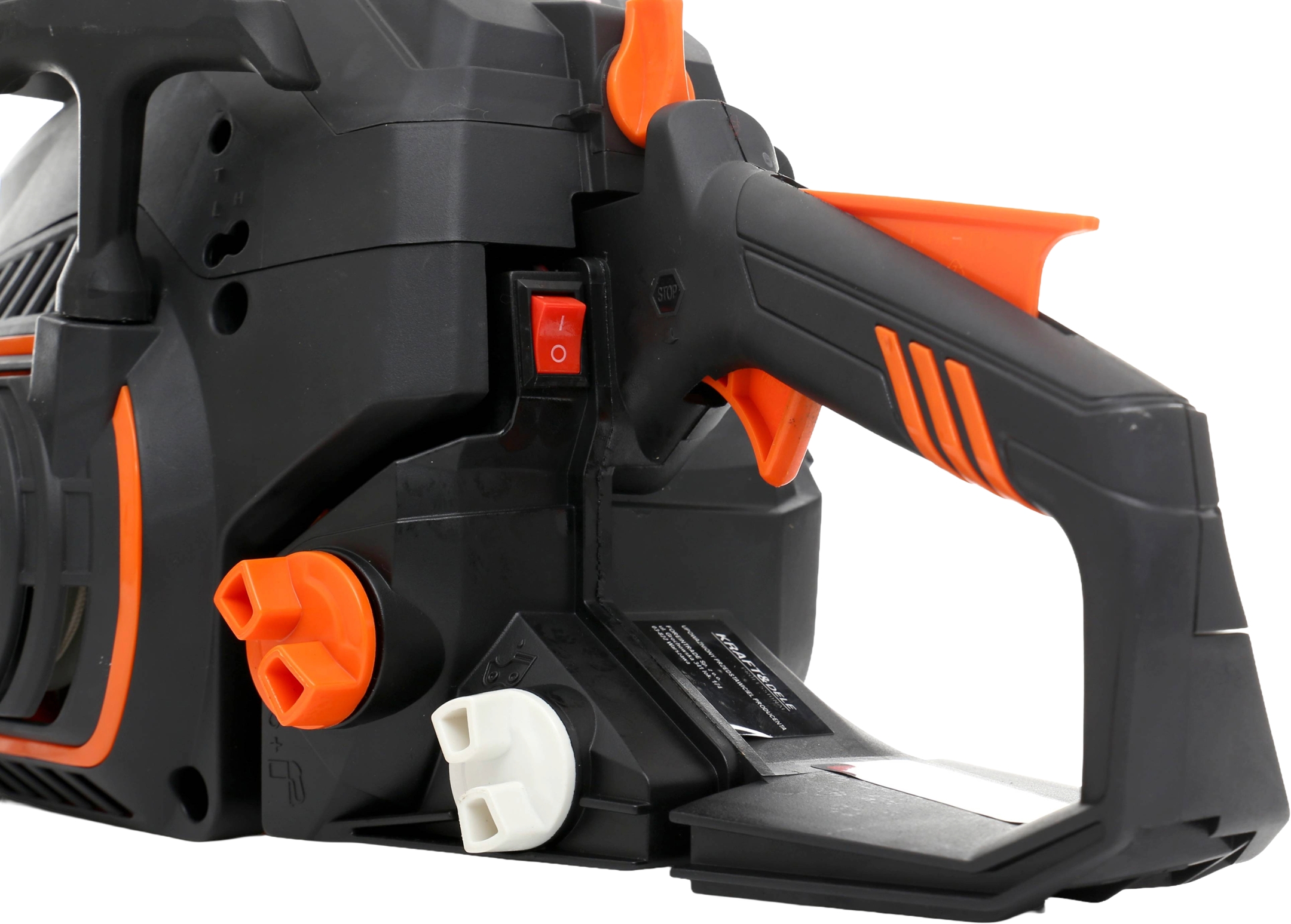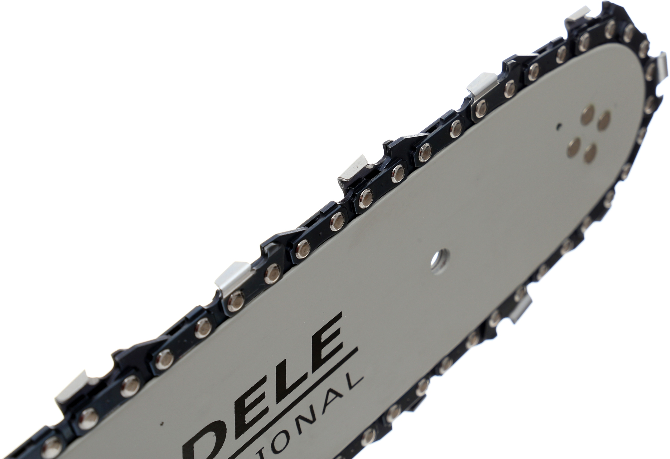 Zastosowana prowadnica o długości 14" (35 cm) pozwala na efektywne cięcie zarówno cieńszych, jak i średniej grubości elementów drewnianych. Metalowy grzebień oporowy zwiększa kontrolę nad narzędziem, umożliwiając precyzyjne prowadzenie cięcia i poprawiając bezpieczeństwo pracy.
