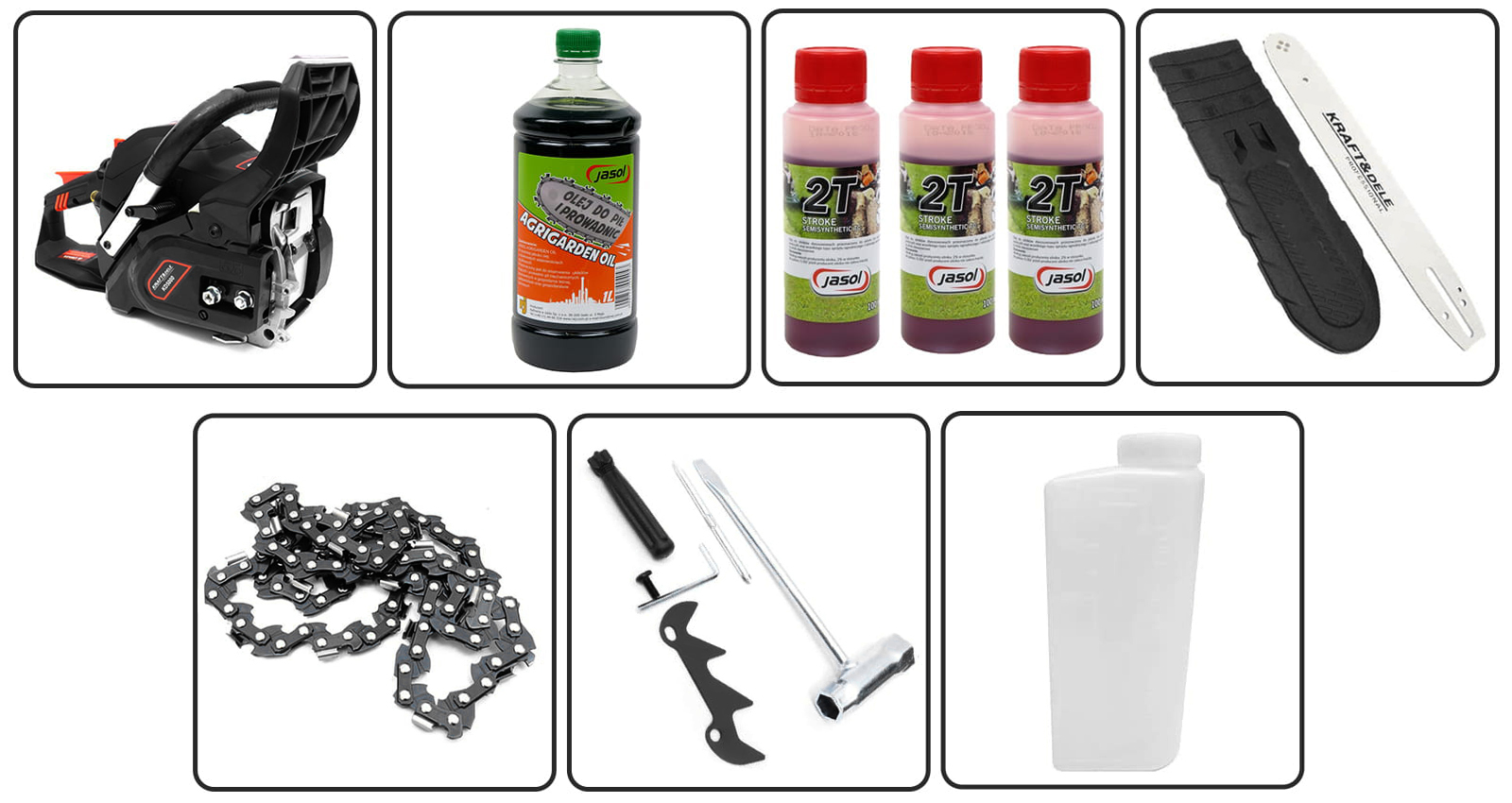 - Model: KD5000 + 3x olej 100ml 2-suw + 1L AGRIGARDEN do łańcucha