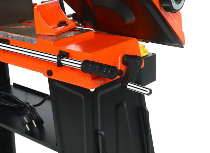 Maszyna została wykonana z odlewu żeliwnego, co zapewnia wysoką stabilność podczas pracy, minimalizuje wibracje i gwarantuje precyzyjne prowadzenie cięcia. Ciężka i wytrzymała konstrukcja jest odporna na uszkodzenia mechaniczne, co czyni ją idealnym wyborem dla wymagających użytkowników. Antypoślizgowe nóżki oraz szeroka podstawa dodatkowo zwiększają bezpieczeństwo i komfort pracy.