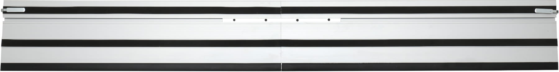 Zestaw został uzupełniony o dwie szyny prowadzące o długości 700 mm, które umożliwiają dokładne i stabilne prowadzenie pilarki podczas pracy. Wykonane z aluminium elementy cechują się odpornością na odkształcenia, a zastosowana taśma antypoślizgowa poprawia przyczepność do powierzchni roboczej. Teflonowe ślizgi ułatwiają płynne przesuwanie narzędzia, co przekłada się na większą precyzję cięcia.