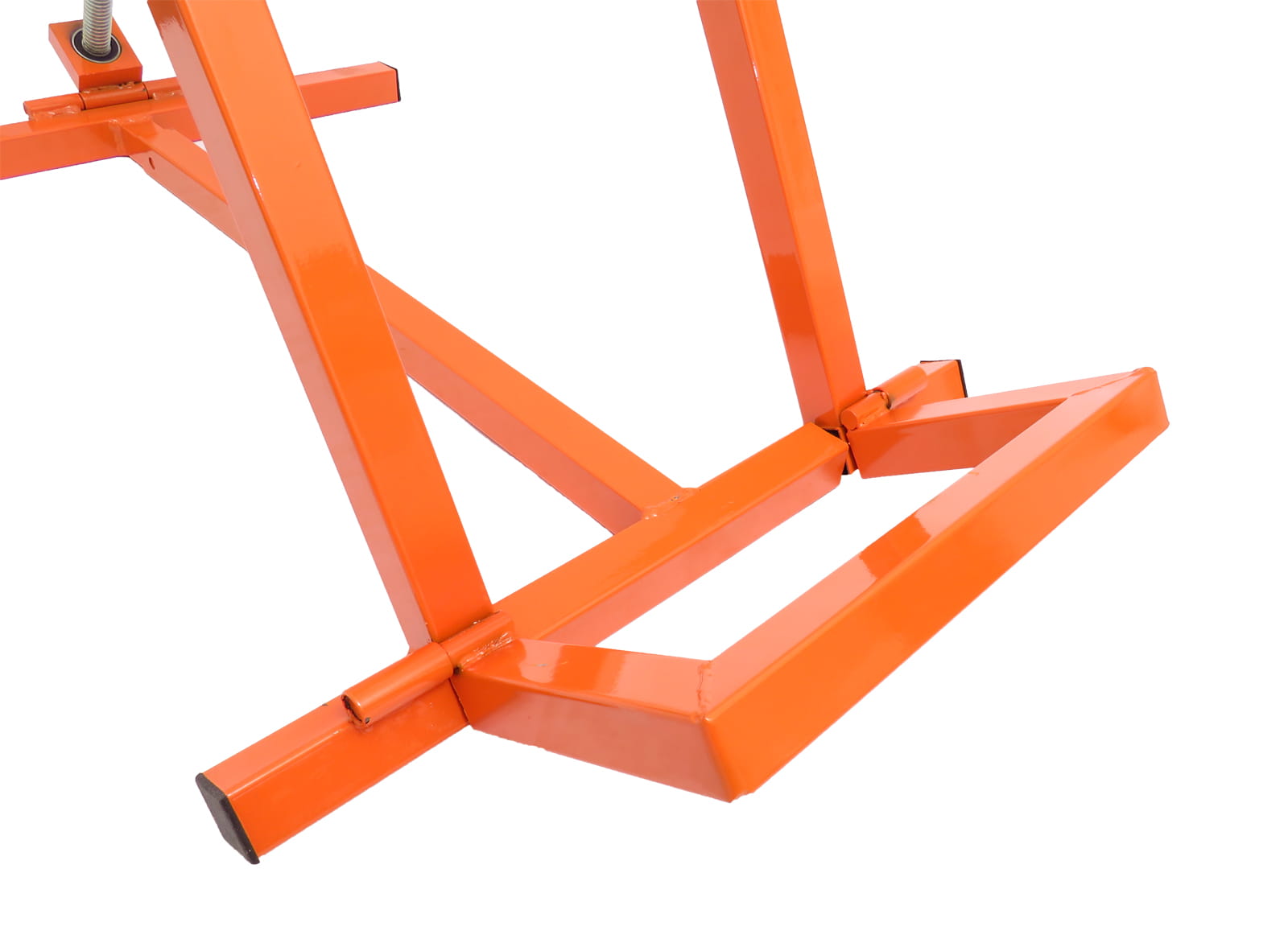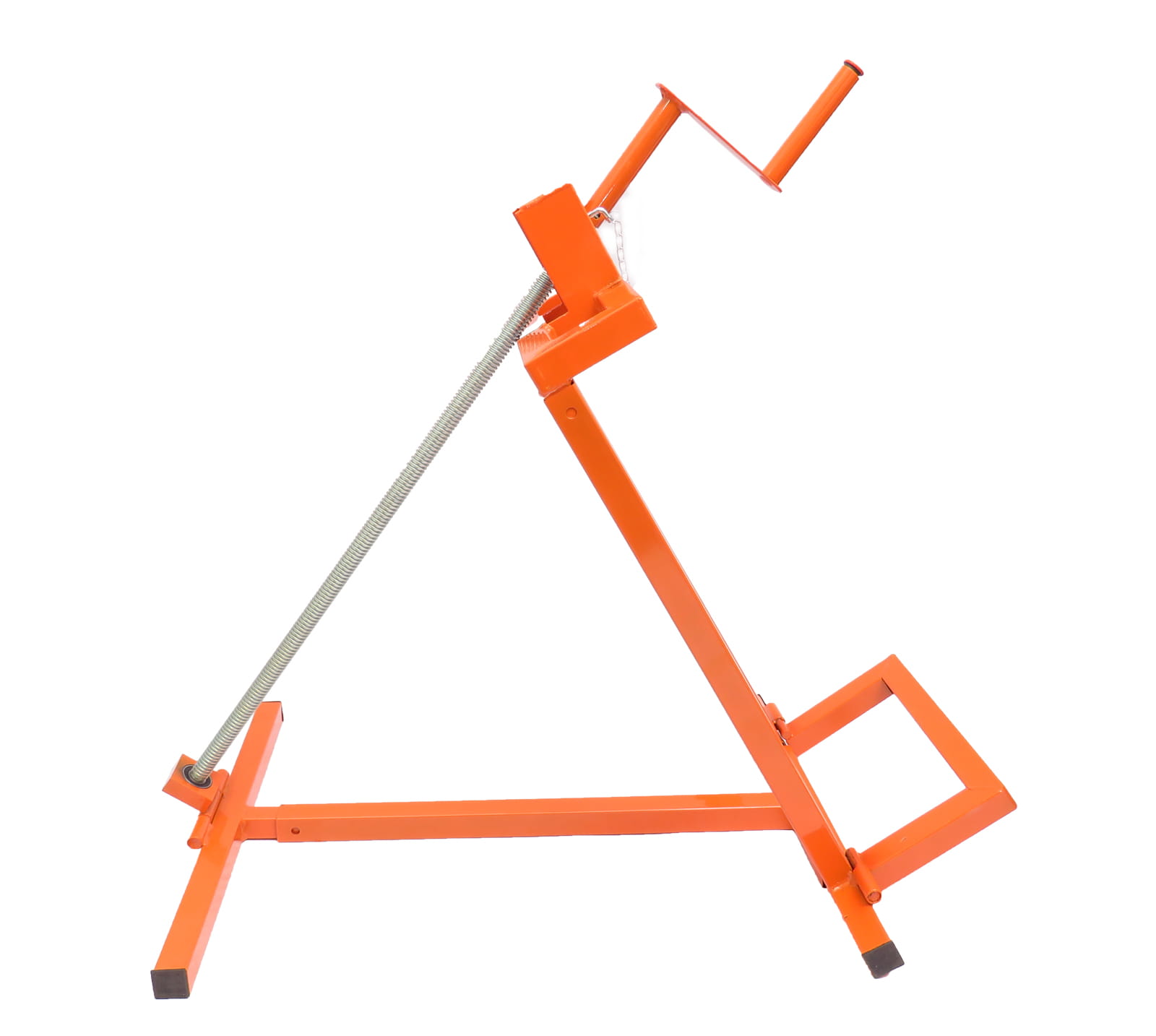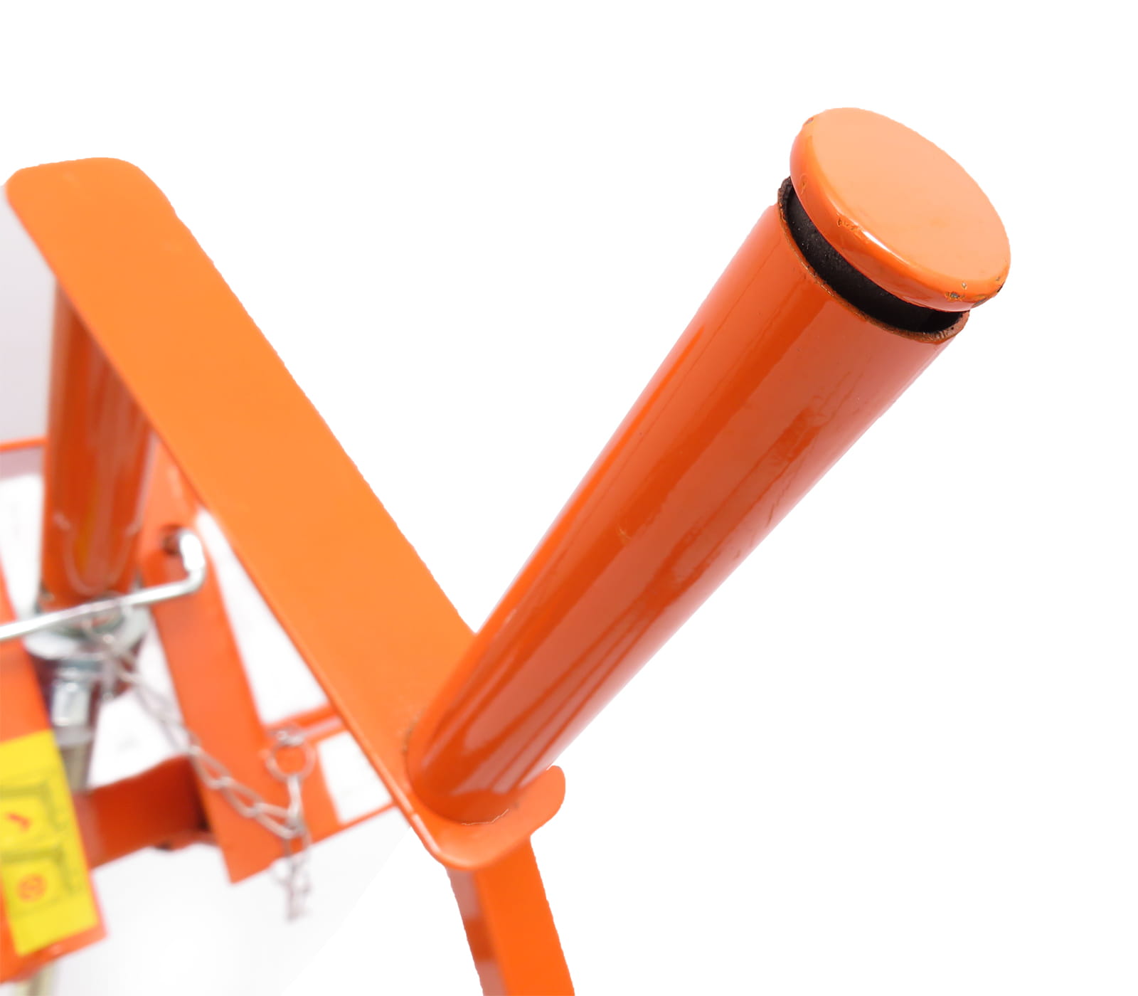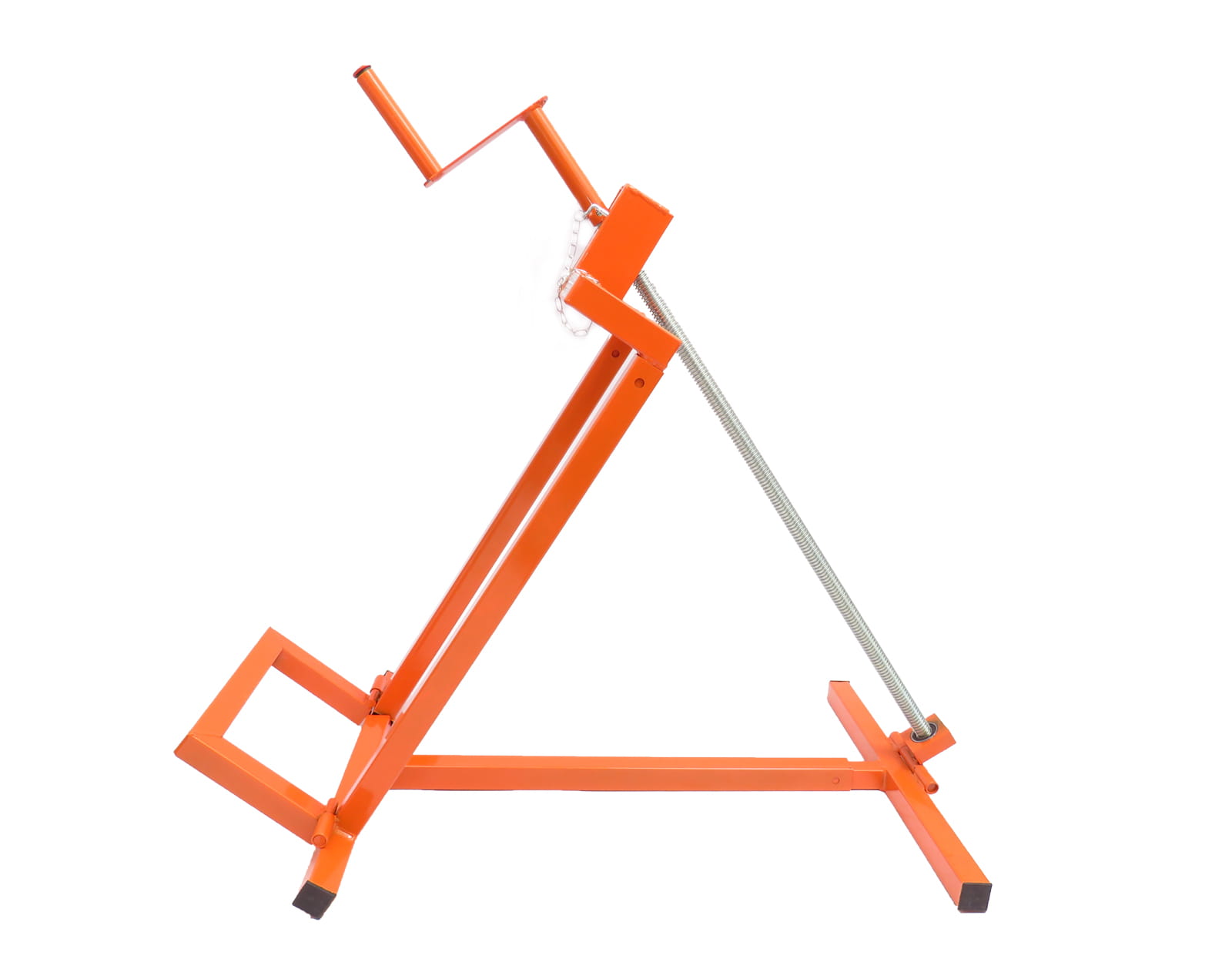 Konstrukcja podnośnika została zaprojektowana z myślą o prostocie użytkowania. Wystarczy wprowadzić tylne koła pojazdu do gniazda podnoszącego, a następnie unieść maszynę do pożądanej wysokości za pomocą praktycznej korby. System regulacji wysokości pozwala dostosować pozycję roboczą do indywidualnych potrzeb, co zwiększa komfort i efektywność pracy.