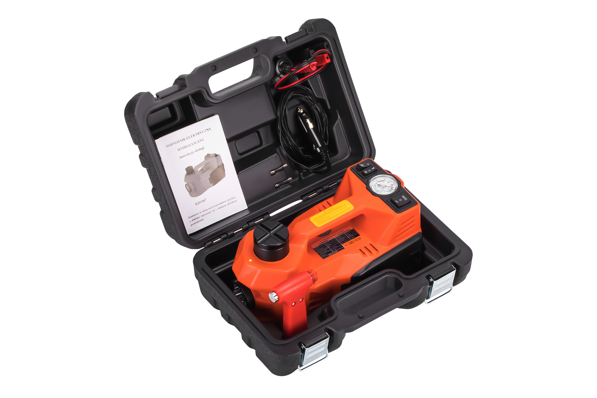 Uniwersalne, wielofunkcyjne i bezpieczne narzędzie do awaryjnych sytuacji na drodze i codziennego użytku. Podnośnik elektryczny marki KRAFT&DELE to niezawodne urządzenie do podnoszenia pojazdów i pompowania opon. Idealne do aut osobowych, SUV-ów, vanów i lekkich ciężarówek. Wyposażony w silnik o mocy 150W, zasilanie 12V oraz zintegrowany kompresor, umożliwia bezwysiłkową i szybką obsługę – nawet w trudnych warunkach terenowych.