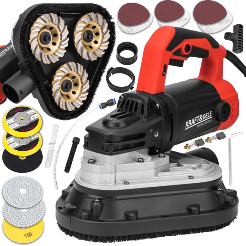 Wyposażona w tarczę o średnicy 100 mm oraz zestaw 12 wymiennych końcówek roboczych, maszyna umożliwia skuteczne szlifowanie, polerowanie i usuwanie różnego rodzaju powłok z powierzchni betonowych, kamiennych, gresowych czy ceramicznych. Solidna konstrukcja, odpowiednie wyważenie i niskie wibracje zapewniają komfort pracy i precyzję działania.