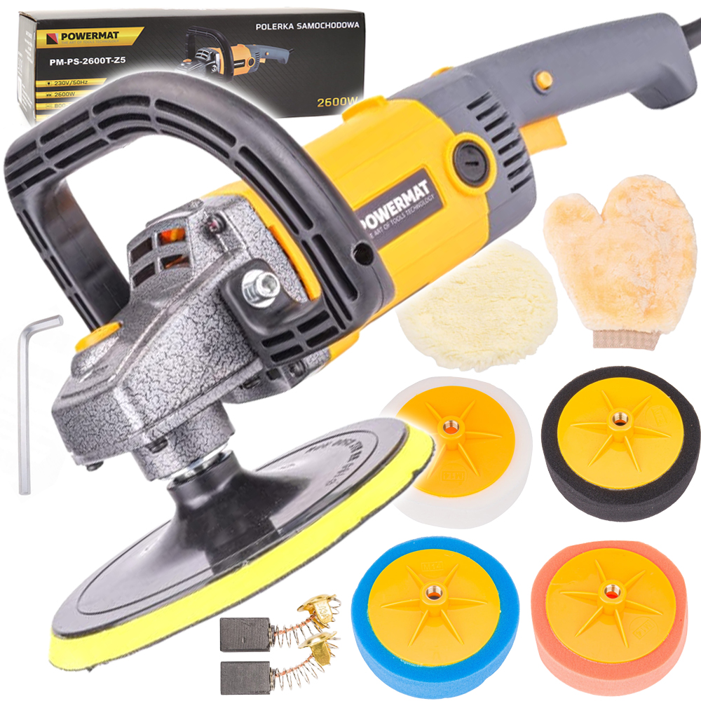 POLERKA SAMOCHODOWA DO LAKIERU SZLIFIERKA 2600W 4xGĄBKA FILC + RĘKAWICA