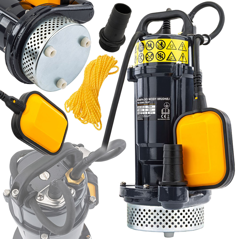 POMPA DO WODY CZYSTEJ BRUDNEJ Z PŁYWAKIEM ZATAPIALNA MOCNA 750W 6000 l/h 1"