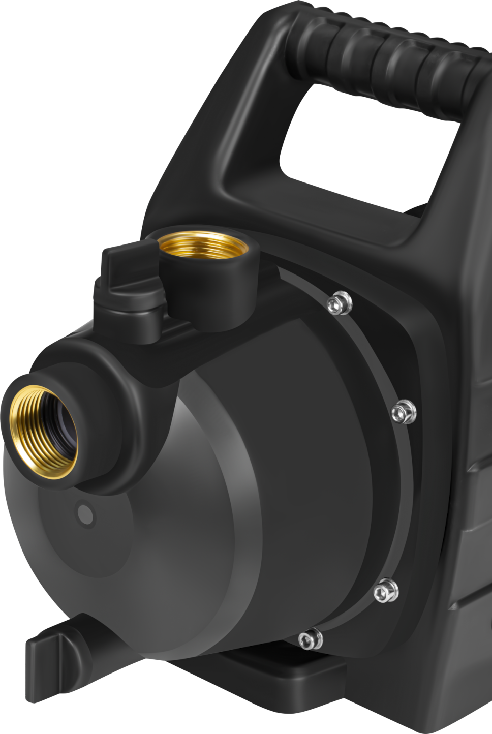 Kompaktowa i stabilna konstrukcja ogrodowa umożliwia bezpieczne ustawienie urządzenia w pobliżu źródła wody. Standardowe przyłącze 1” pozwala na szybki montaż przewodów ssących i tłocznych.