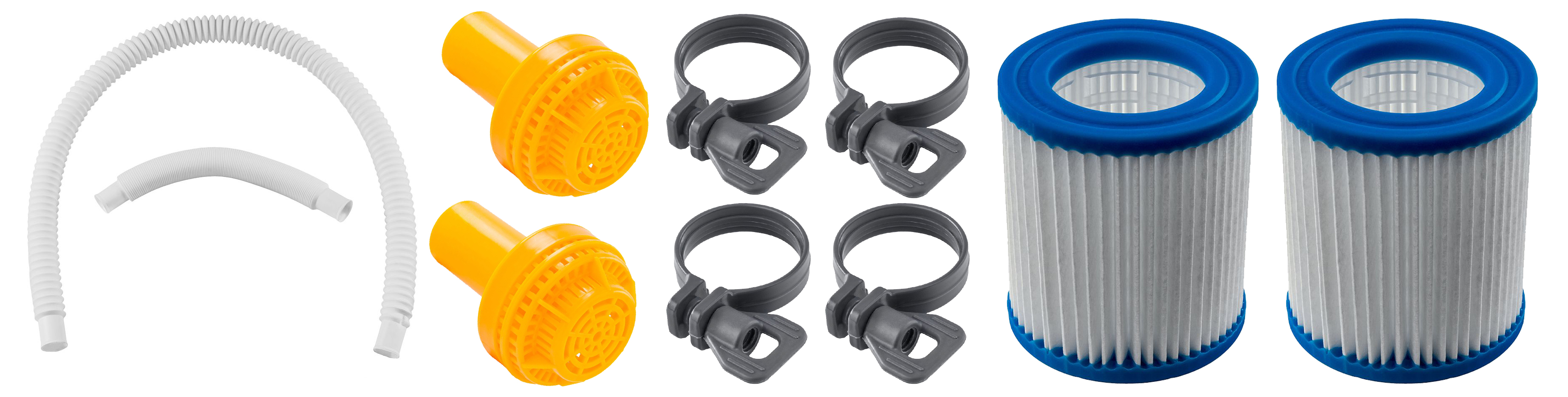 Standardowe złącze o średnicy 32 mm umożliwia szybkie podłączenie pompy do popularnych instalacji stosowanych w basenach demontowanych. Dołączone węże oraz elementy montażowe pozwalają rozpocząć pracę bez konieczności stosowania dodatkowych akcesoriów czy przeróbek instalacji.